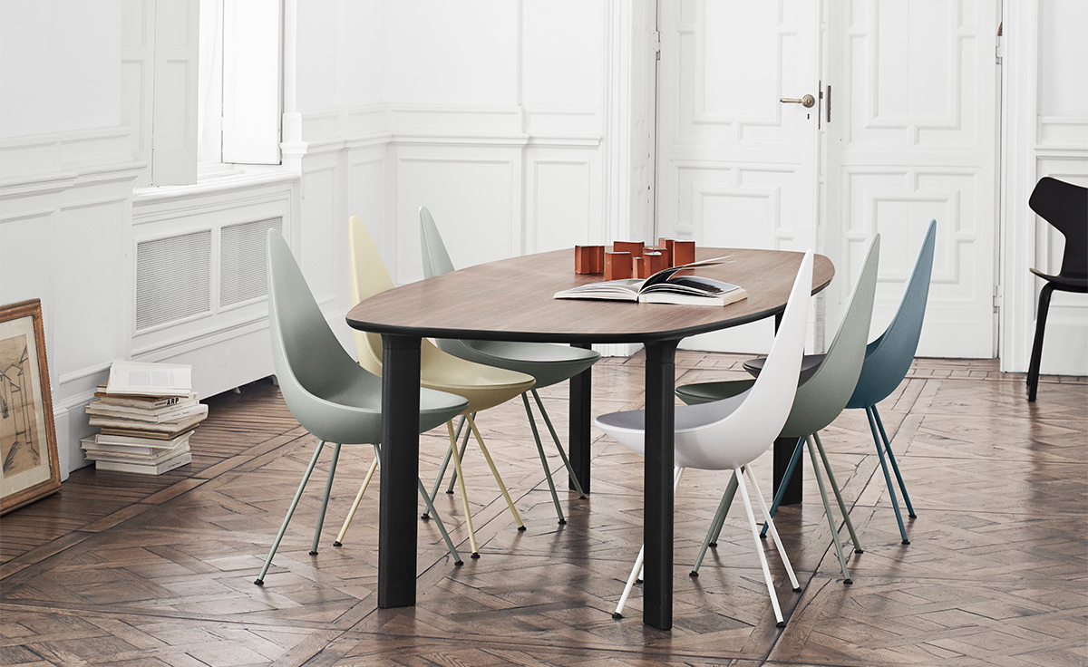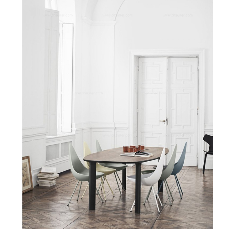 在“沉寂”50多年后,椅子现在重新上市。这把小椅子有着非常大的个性,清新并充满活力,稀有的传承。背面的设计结合了一个温暖的拥抱和自由运动,从而产生一个令人惊讶的舒适度。阿恩·雅各布森是非常富有成效的建筑师和设计师。他与弗里茨·汉森的合作可以追溯到1934年。1952年,“蚂蚁”和“系列7”椅子产生,从而将雅各布森和弗里茨·汉森的名字载入到家具的历史。1950年代末,阿恩·雅各布森设计了哥本哈根皇家酒店,并把蛋,天鹅,天鹅沙发和3300系列沙发带到设计世界。阿恩·雅各布森曾经并将永远是一名令人欣赏和杰出的设计师。他的家具和其他设计工作已经成为国内外遗产。“水滴椅”塑料椅子有四条不锈钢腿,镀铬或粉饰,以便与外套匹配。塑料外套提供一系列颜色,并提供与之颜色相匹配的羊毛垫块。"