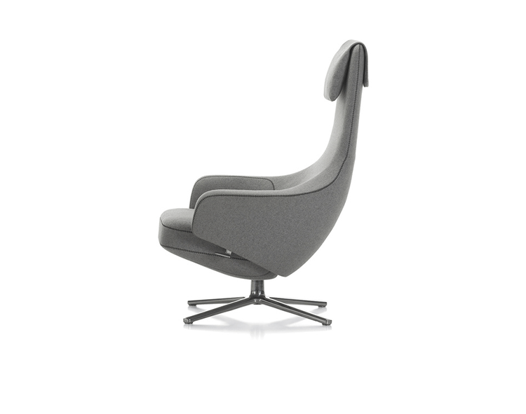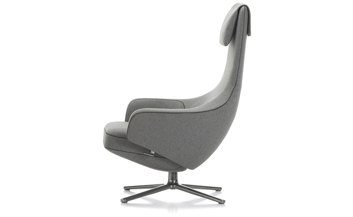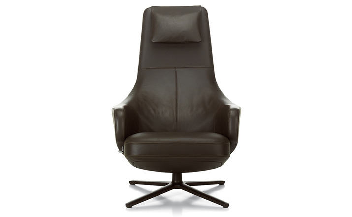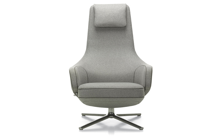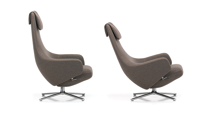 repos lounge chair and ottoman(repos休闲椅&脚踏)由设计大师Antonio Citterio所设计。repos系列休闲椅采用钢制铝合金脚架、聚氨酯海绵填充、高级布艺扪面,可随意调整坐姿和高度,也可以放平躺,配上舒适的羽毛衬垫,无论阅读或者休憩,都非常舒服,符合人体工学,高档舒适,是办公,会议的理想选择。意大利设计师和建筑师 Antonio Citterio赋予了这边椅子永恒的优雅气质与无与伦比的舒适,是当代设计的经典,无论用在办公、商业、家庭都是非常高贵大气的。