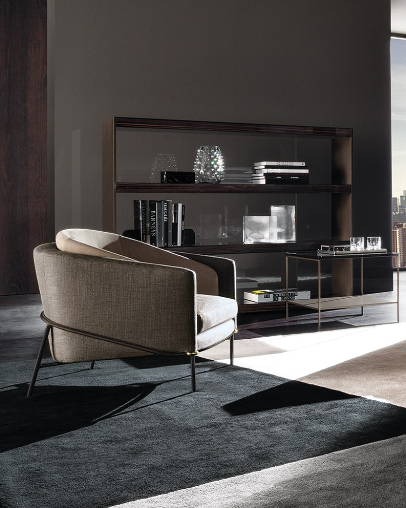 Fil Noir沙发系列的名称源于一个物品,那就是线条——连续性的象征。线条赋予沙发形状和具象:不仅创造出整体造型,还提供支撑并环抱其中。线条体现出简约的材料之选:亚光黑色漆面的金属管。沙发边角的亮光金色、黑镍金属色或浅铜色的圆环为这一严谨的材料之选平添一份柔和的装饰效果,与冷峻的结构形成巧妙的对比。