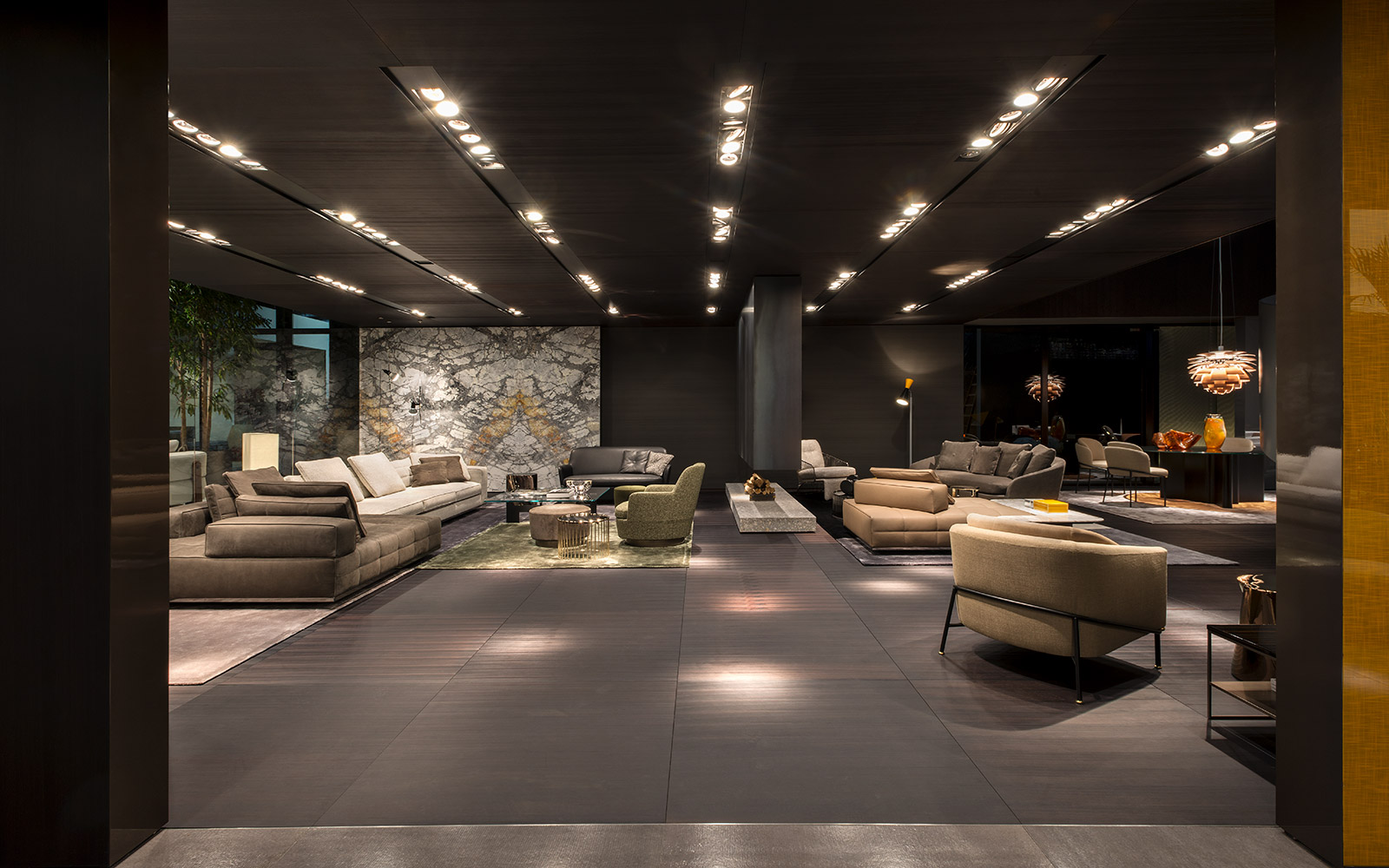 柔和的造型、紧凑的比例和具有视觉冲击力的细节呈现出精致的美学语言,金属基座采用淡铜色的表面设计。