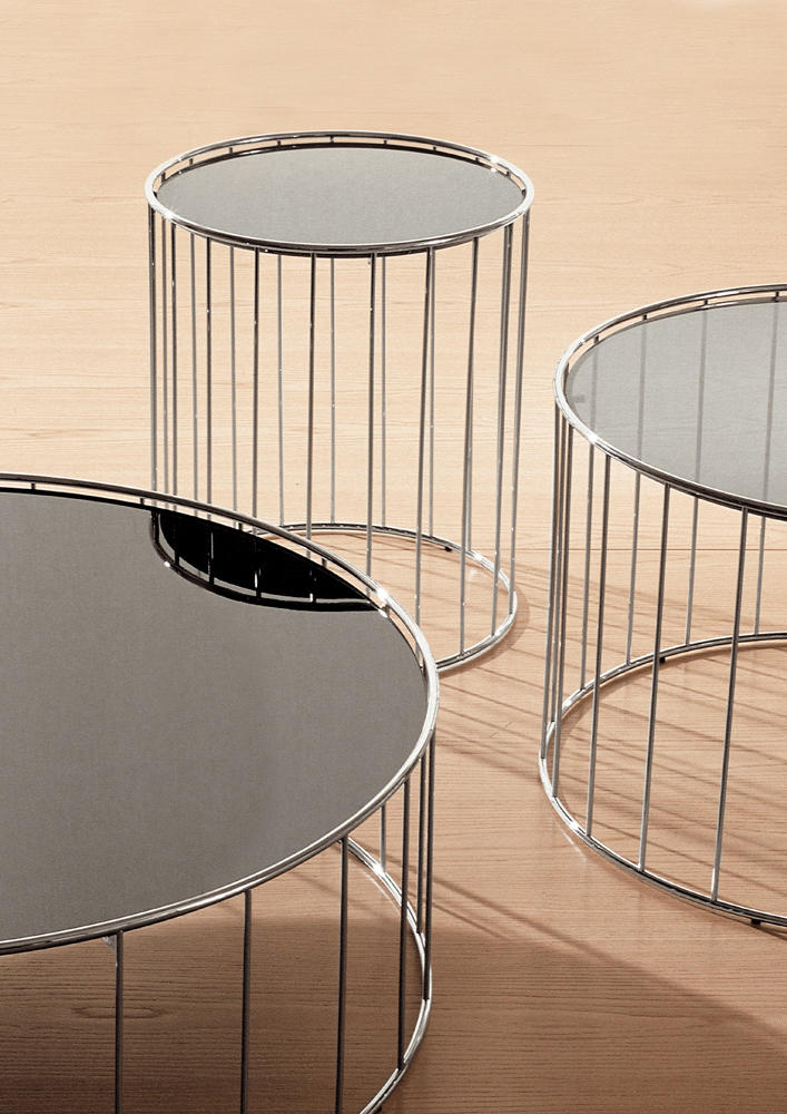 三张边几呈现出轻盈的特质。仿佛虚空的设计理念,将减法做到最大程度。纤细的支撑杆搭配具有极简主义风格的台面。非常的个性,不同寻常的表现力。“Less is more”