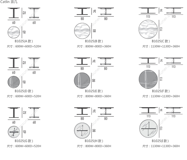 Catlin 茶几 系列尺寸/示意图