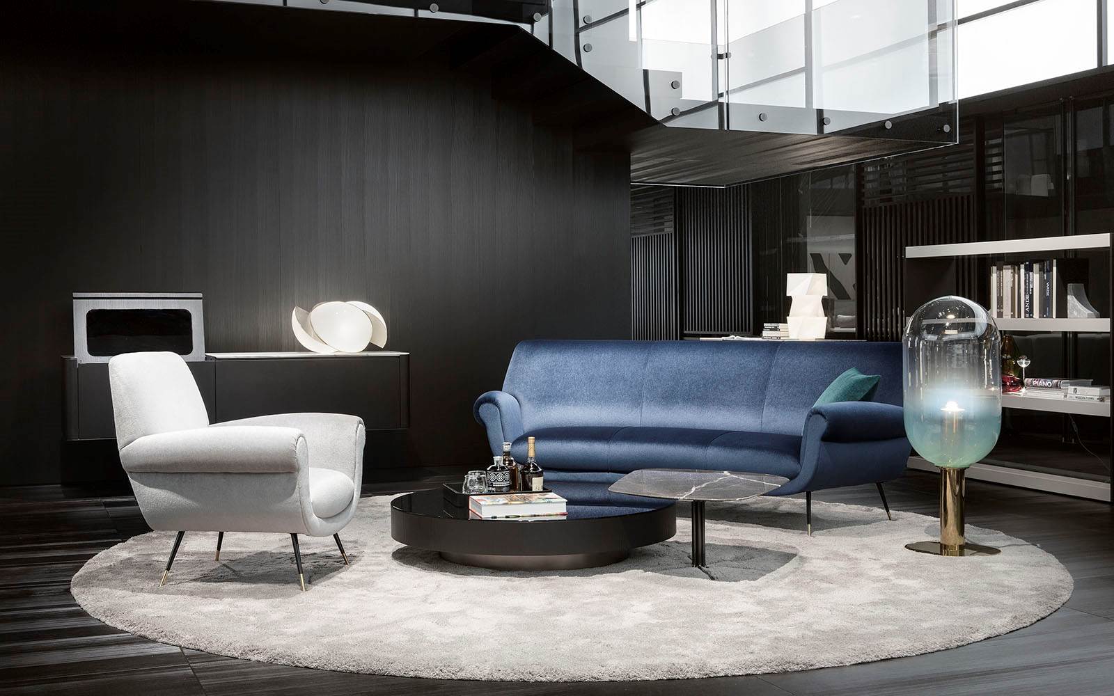 由悬挂的几何体积和较低的高度相结合形成的,在圆形、方形、矩形和梯形的版本中都有米尔顿的侧表。这些几何图形被圆角的圆角所软化,这让人想起了亚历山大“下降”座位系统的蜿蜒曲线。它们的特点是对70年代的线条进行了更为现代和装饰性的重新诠释,展示了珍贵材料和有机几何的完美结合。