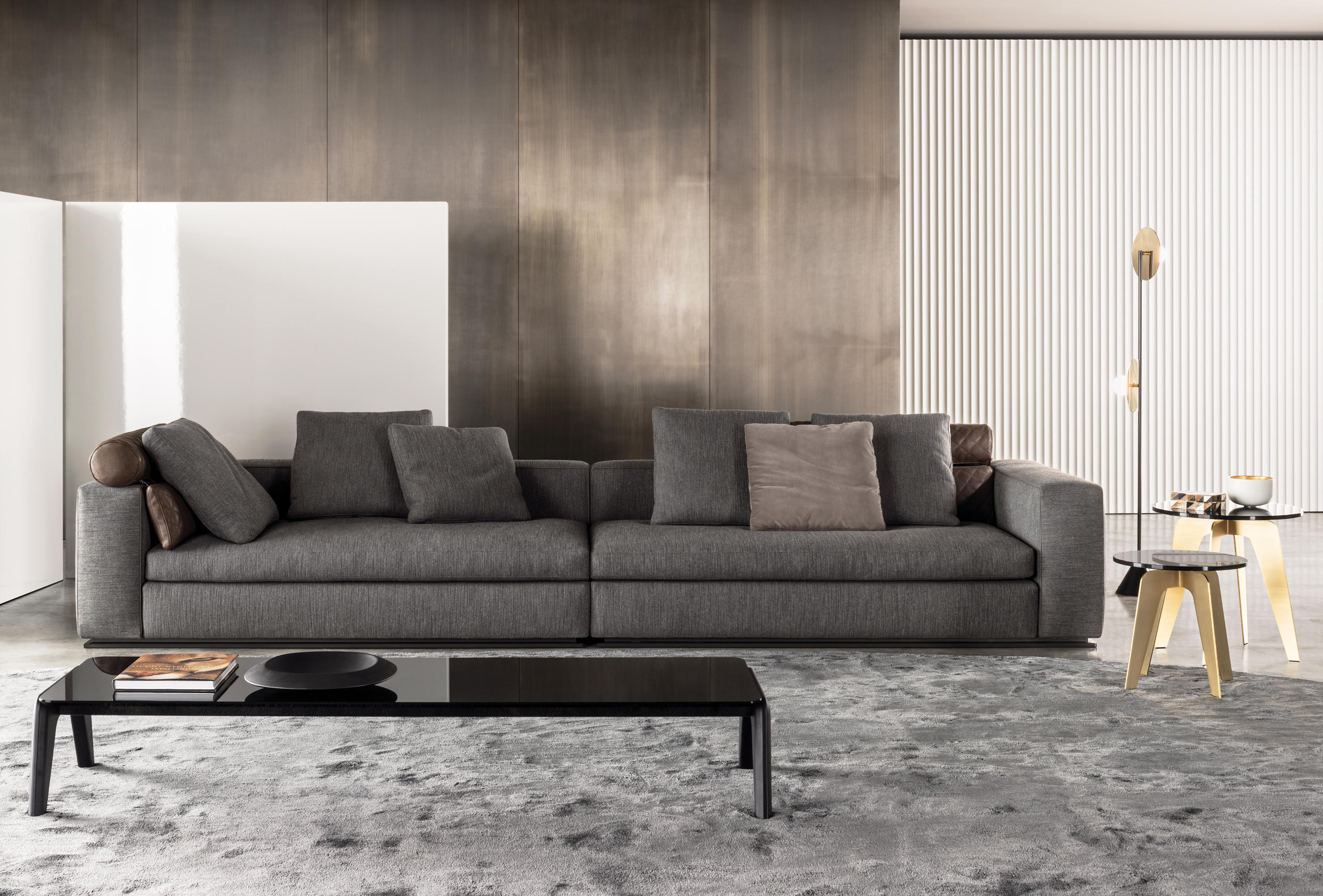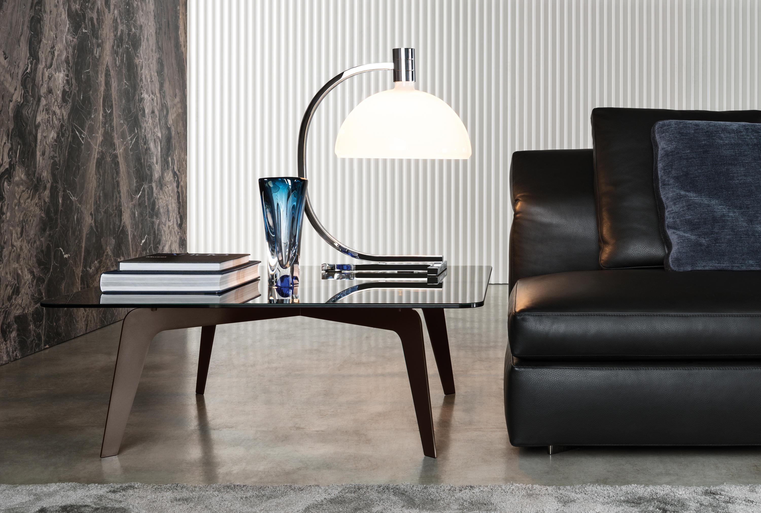 以精美梣木底座致敬传统黑檀木艺术,搭配拥有圆滑转角与柔和饰边的光泽漆面黑檀木、黑色脱蜡琉璃及 Marron Damasco 大理石台板。