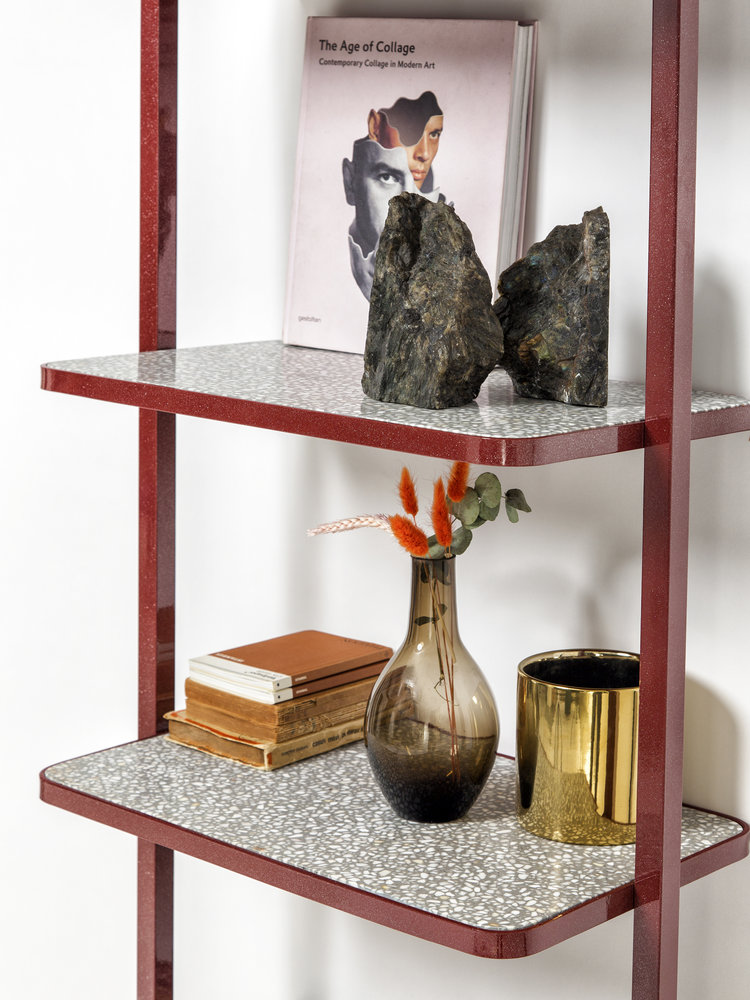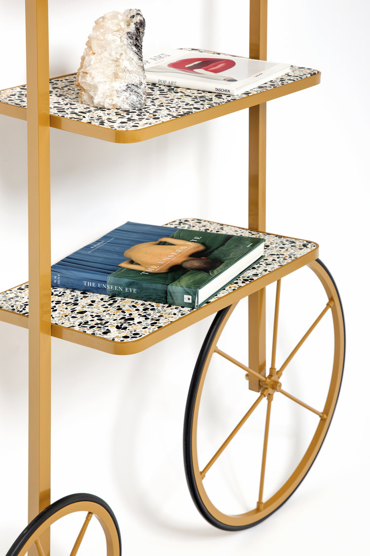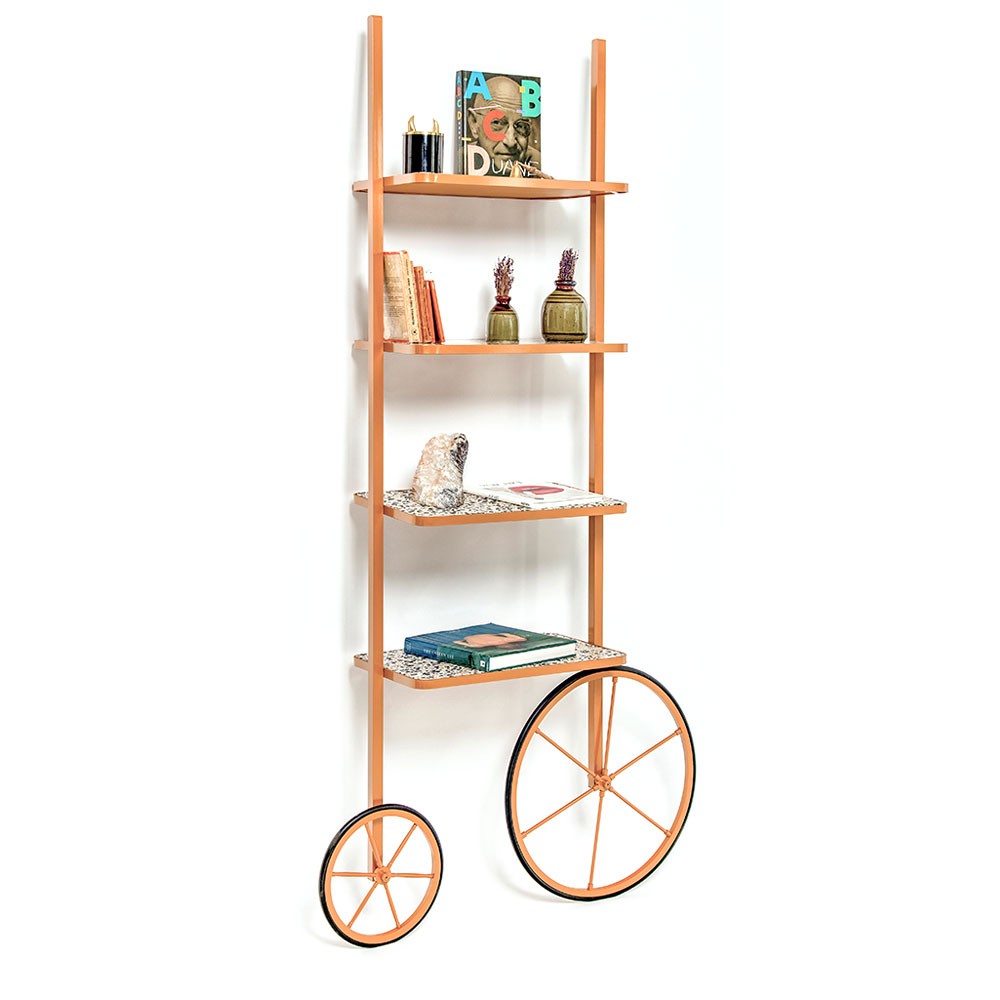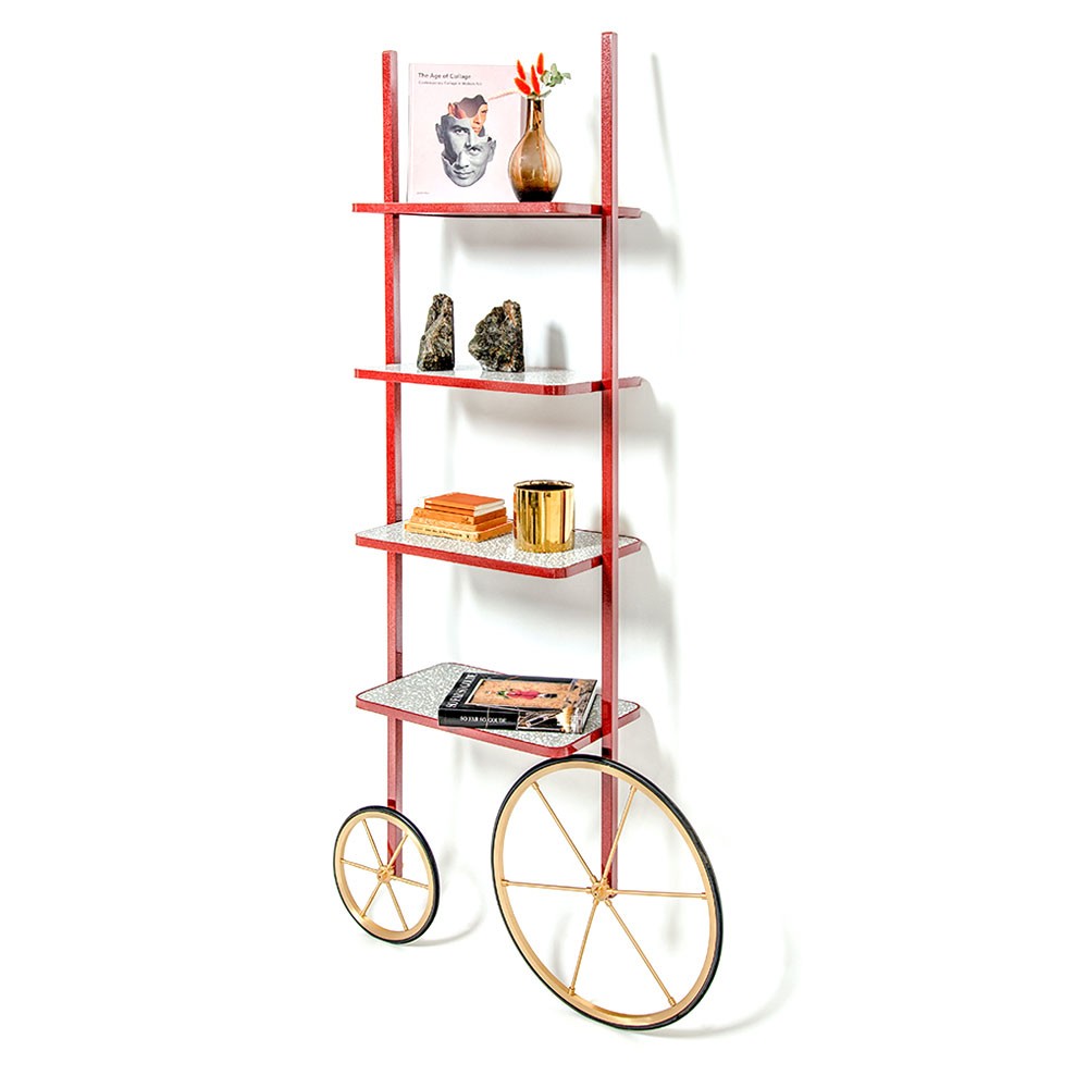 Cyclopedia的设计源于19世纪70年代的高轮自行车。 与大多数书架不同,Cyclopedia通过其便携式结构使自己与众不同。 这个独特的作品是一个图书馆和一个展示架,可以在空间周围的不同位置轮式和定位,以满足业主的喜好和目的。 新版Cyclopedia由波尔多彩色粉末涂层金属和灰白色水磨石组成,这款手工制作的单品必将为其任何表面带来不拘一格的氛围。