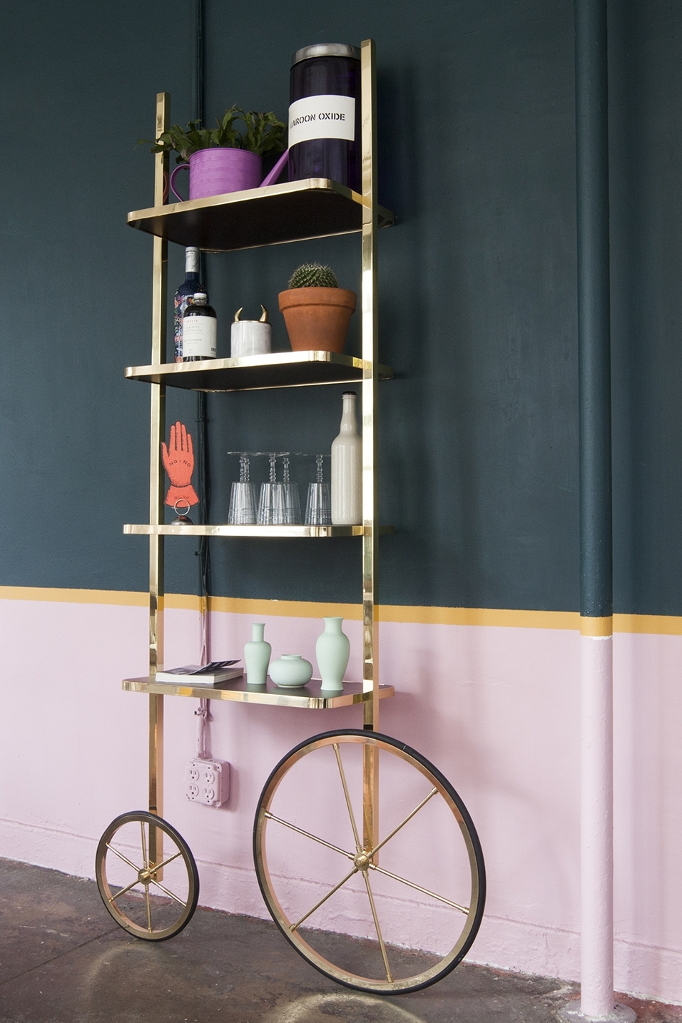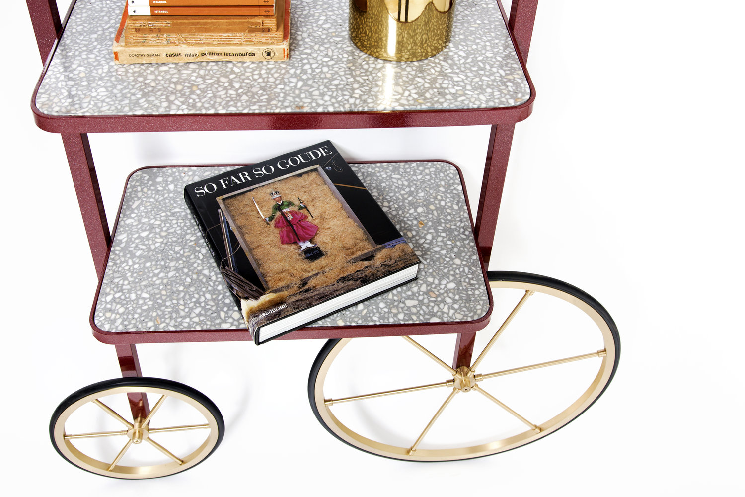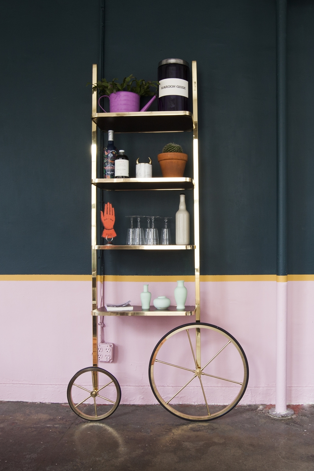 Cyclopedia的设计源于19世纪70年代的高轮自行车。 与大多数书架不同,Cyclopedia通过其便携式结构使自己与众不同。 这个独特的作品是一个图书馆和一个展示架,可以在空间周围的不同位置轮式和定位,以满足业主的喜好和目的。 新版Cyclopedia由波尔多彩色粉末涂层金属和灰白色水磨石组成,这款手工制作的单品必将为其任何表面带来不拘一格的氛围。