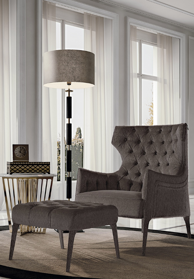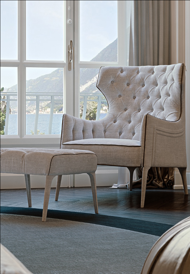 完美的阅读和放松的椅子的形式,从impreziosita冷静,优雅的刺绣在靠背