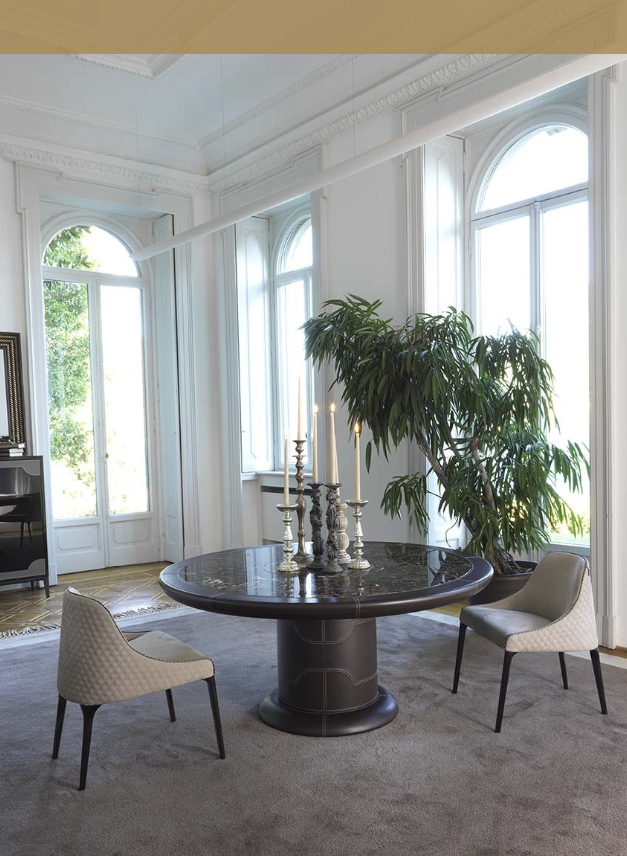 La lavorazione capitonné, di antica tradizione artigianale, impreziosisce questo modello di classica eleganza