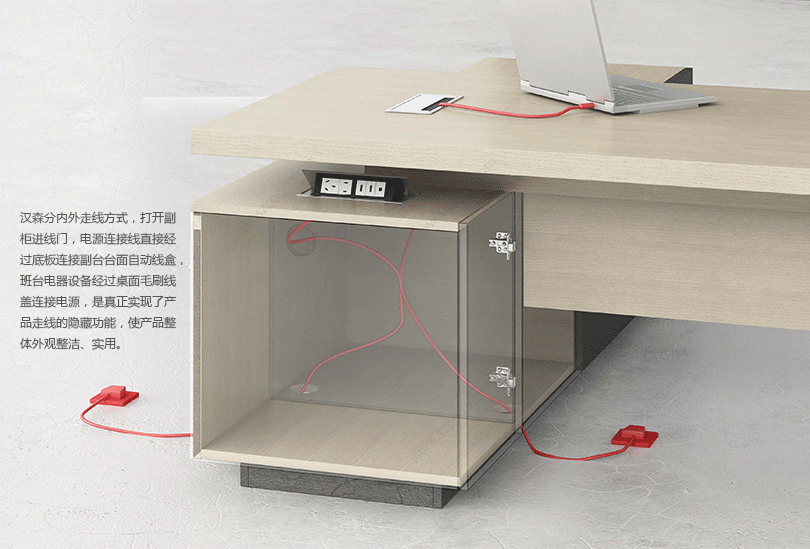 汉森的主要特点是线条粗犷,粗线条透着现代感茶几不拘一格,跳出传统。地柜及文件柜都显示着与众不同的个性,空格式文件柜增添了一种书房里的文人气质,文件柜分为6格空格、4格空格及独立的衣柜,和配套的后地柜,可根据办公室的实际尺寸自由组合,也可搭配一排空格柜,班台后面加地柜