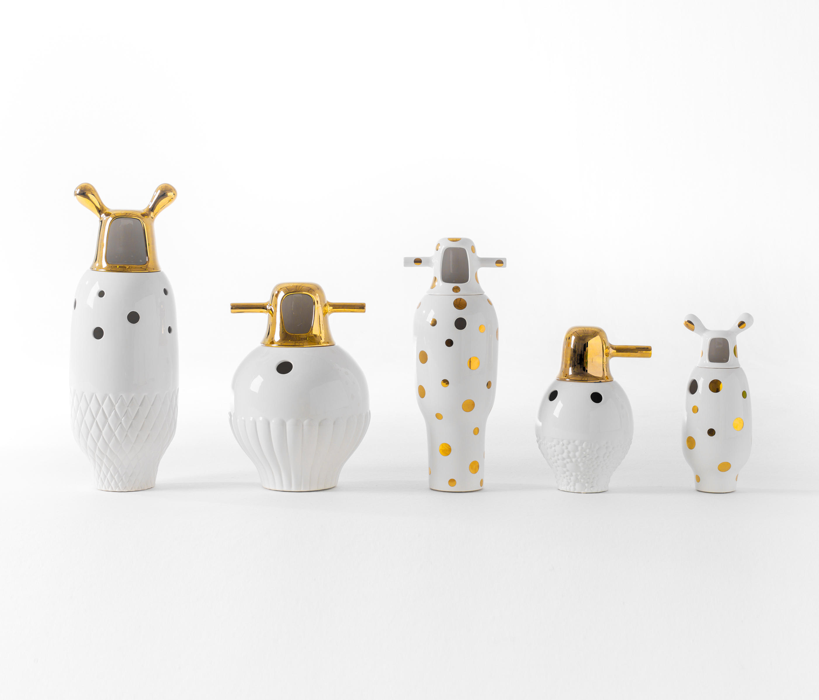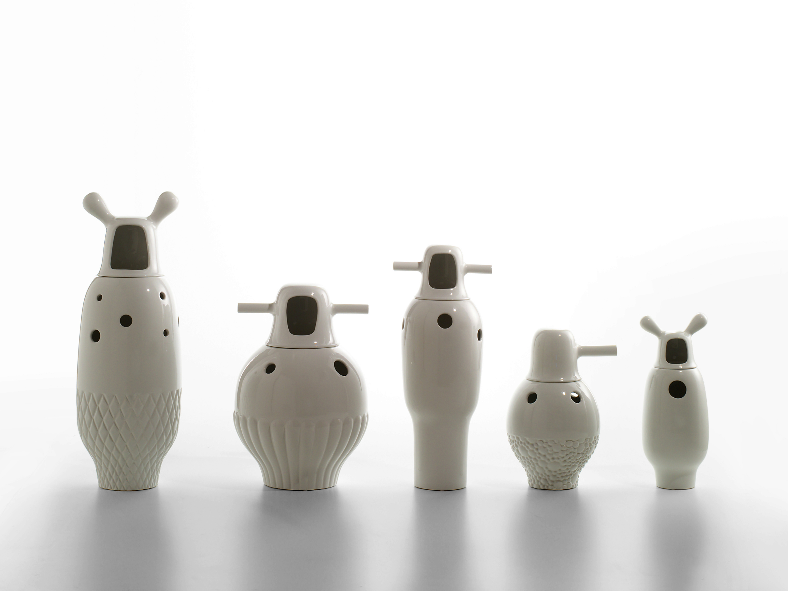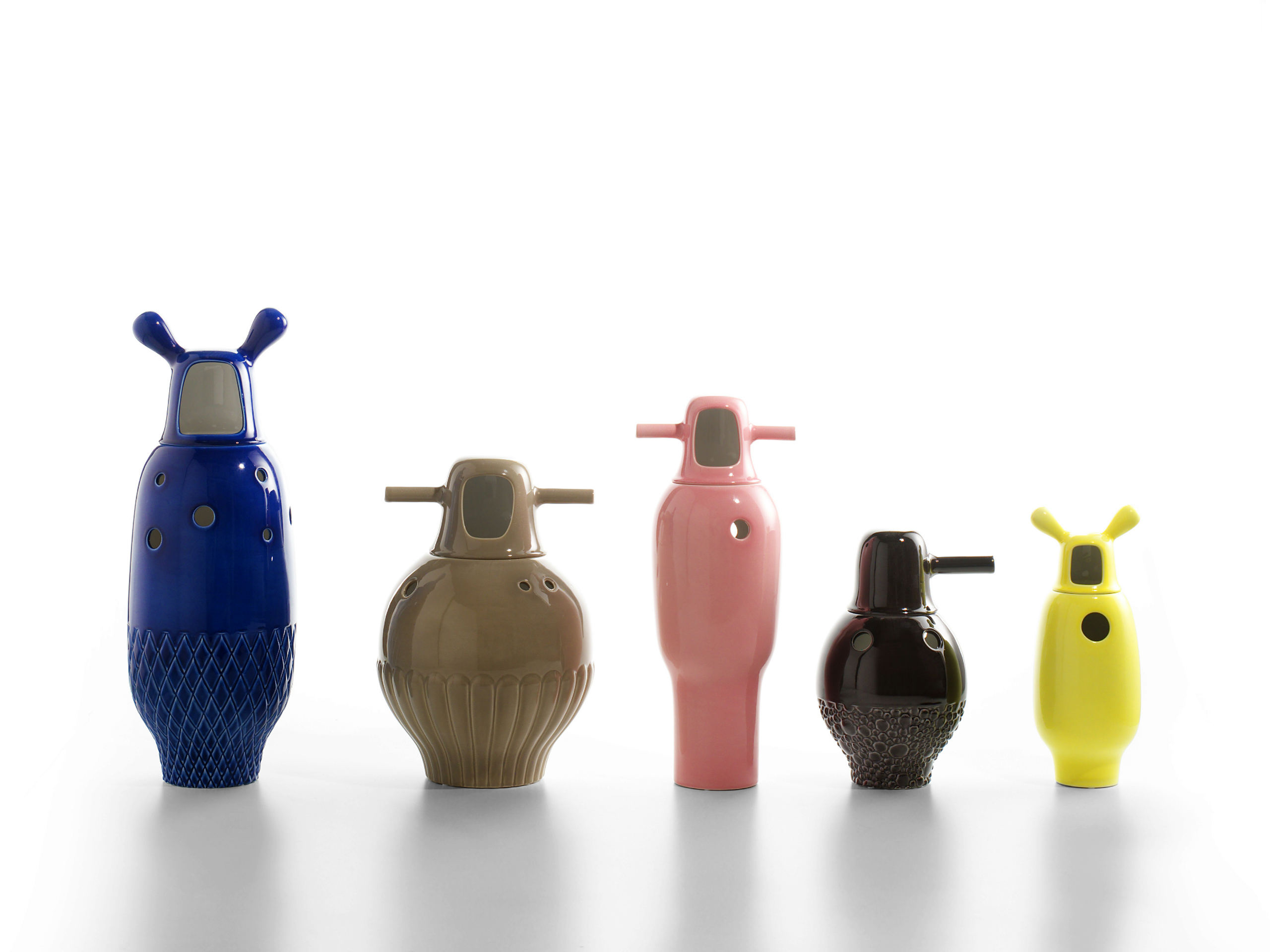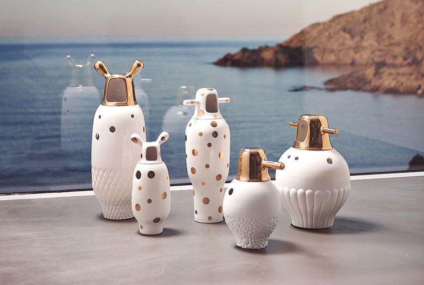 五个模型的白瓷花瓶或不同颜色的珐琅花瓶。五个可以摆放花朵的雕塑。Showtime的个性互补系列。两件上釉的陶器制成。Jaime Hayon最他在西班牙的新设计中颇具魅力。他具有活力,才华和自己的风格,这些都被融入到Showtime中他曾为西班牙最负盛名的西班牙设计公司Bd Barcelona设计而设计的系列。年轻设计师与资深生产商之间的这种快乐相遇导致了家具系列的诞生,该系列既适合家庭使用,又具有适应性和个性家具装饰,塑料漆面和微妙的陶瓷传统相得益彰。在古典与现代之间的这些对比中,Showtime反映了Bd一直以来的精髓。看看。