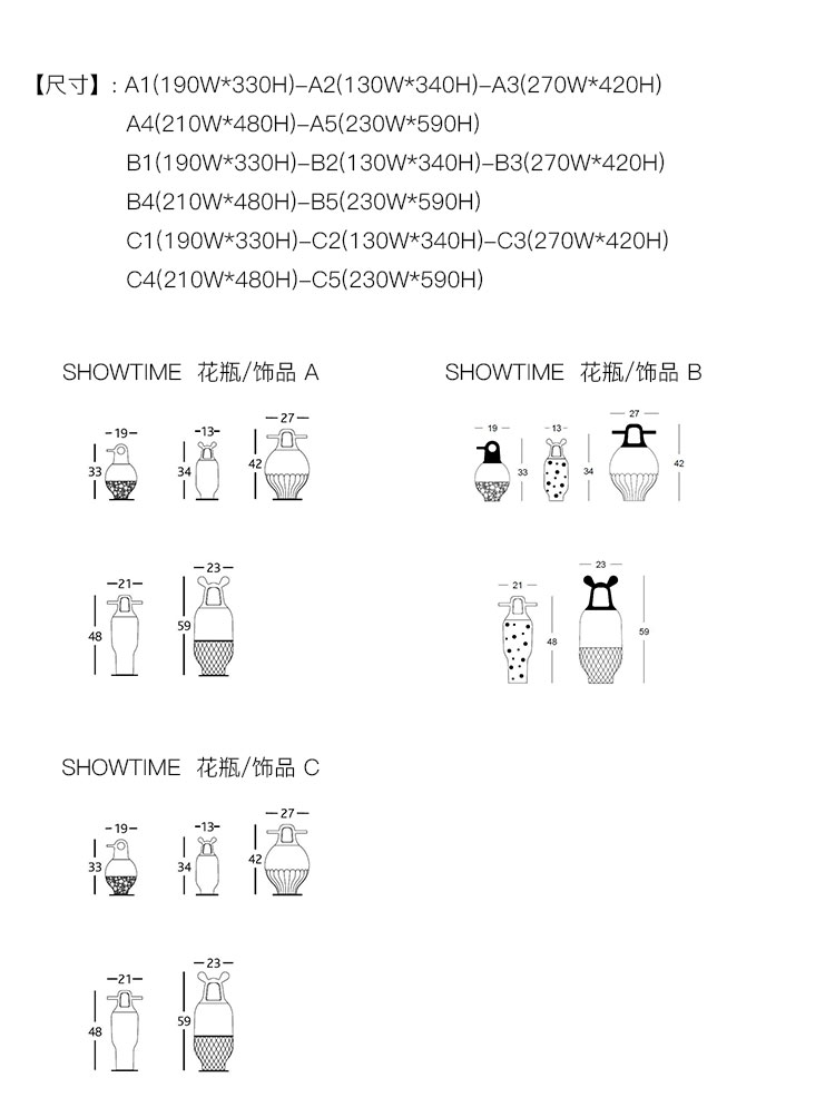 SHOWTIME 花瓶/饰品 系列尺寸/示意图