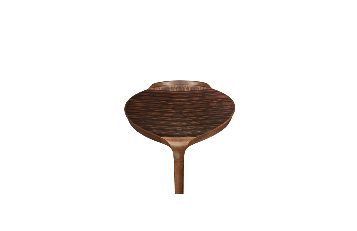 大班台框架,顶部和固体的五斗橱 国家胡桃木单板,可在自然完成,烟草的颜色 完成和黑胡桃木。 腿之间的连接 和腿都在核桃卡纳莱托木与自然完成。