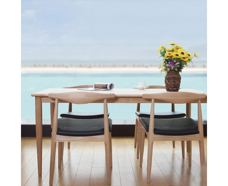 極簡的經典作品,由高超的工匠技術打造。蒸氣彎曲的橢圓椅背以一體成型的木頭雕塑製成,獨特的坐墊底部由11層的原木層壓板製成,提供了卓越的穩定性。椅子主體來自白色柔和的山毛櫸,而坐墊則由天然牛皮製成。Elbow Chair 椅背優美自然的弧度及觸感,清晰的流露出 Hans J. Wegner 對於天然木質中優雅感性的無止盡追求。