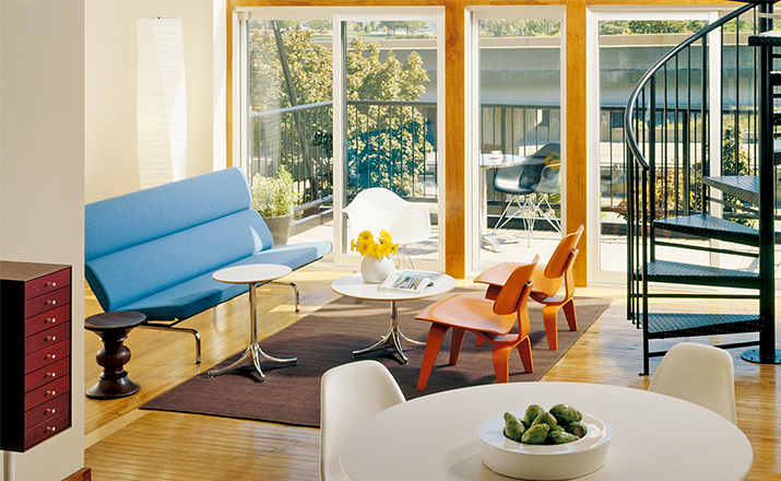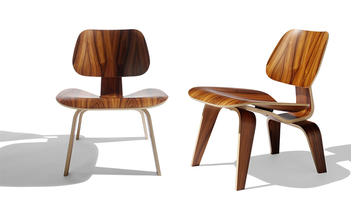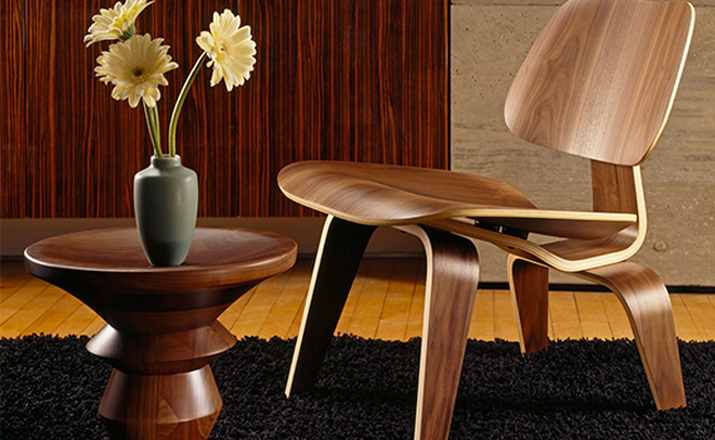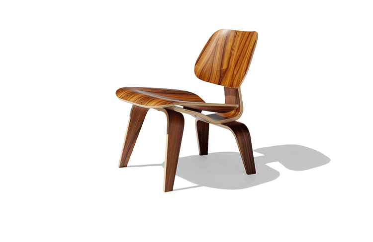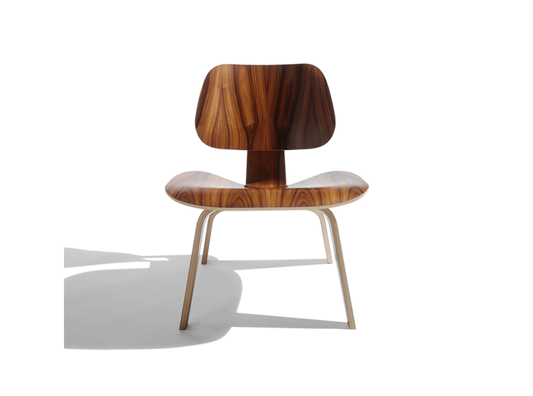 Designers Charles and Ray Eames established their long and legendary relationship with Herman Miller in 1946 with the boldly original molded plywood dining and lounge chairs.Designed to comfortably fit the body,the sculpted form of the molded plywood chairs are produced using thin sheets of lightweight veneer gently molded into curved shapes with natural rubber shock mounts to absorb movement.Since then,the chairs'aesthetic integrity, enduring charm,and comfort have earned it recognition as the best of modern design.Available in either a lounge or dining versions with chrome-plated steel or wood legs.
