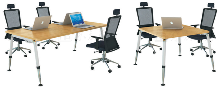 ※  上图为配套系列会议桌、洽谈桌,其特点是喷塑不锈钢椅脚可升降,风格与颜色相搭配 ,现代特色为主,没有过分的装饰,体现了现代生活快节奏、简约和实用的生活气息。