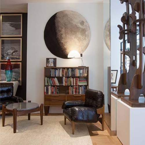 把月亮放在你的脚边。这个梦幻般的作品是80年代的重版,它来自于奥斯卡·托斯卡斯的La Tierra和La Luna地毯。