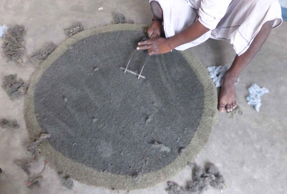 它由三种不同颜色的圆形模型和两种不同大小的圆形模型组成,一个正方形的版本,这是一个从来没有精确或对称的地毯。