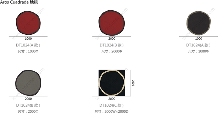 Aros Cuadrada 地毯 系列尺寸/示意图