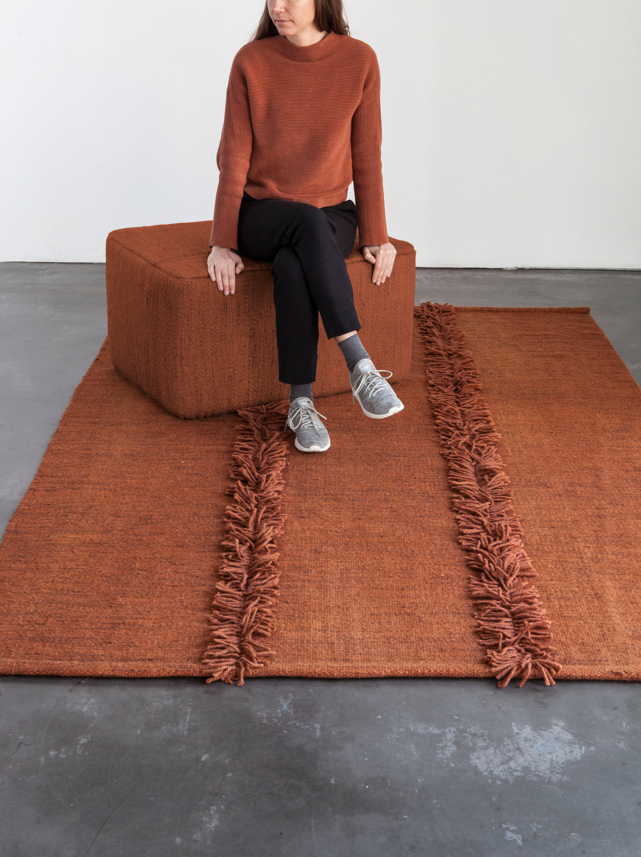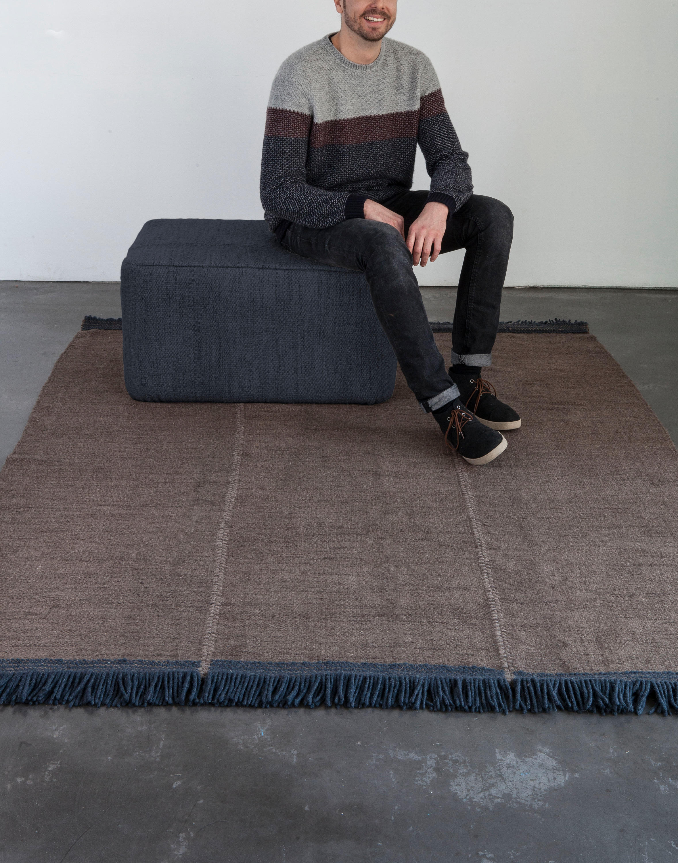 米亚是第一个可以完全定制的系列,在两种尺寸,四种颜色和四种不同的饰面之间做出选择。你可以对比接缝,添加不同类型的条纹,或者选择色彩鲜艳的缝线。无限的结果是可能的;每个细节都有不同,确保你的地毯是独一无二的。
