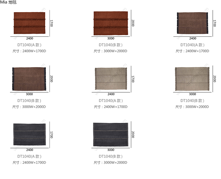 Mia 地毯 系列尺寸/示意图