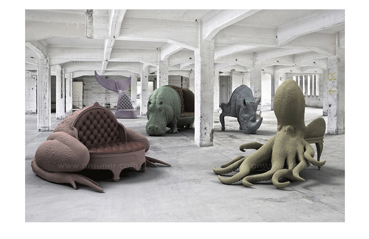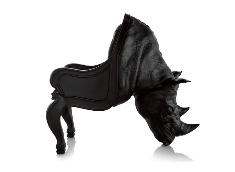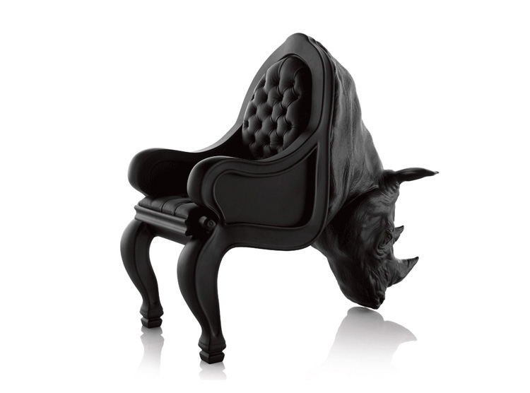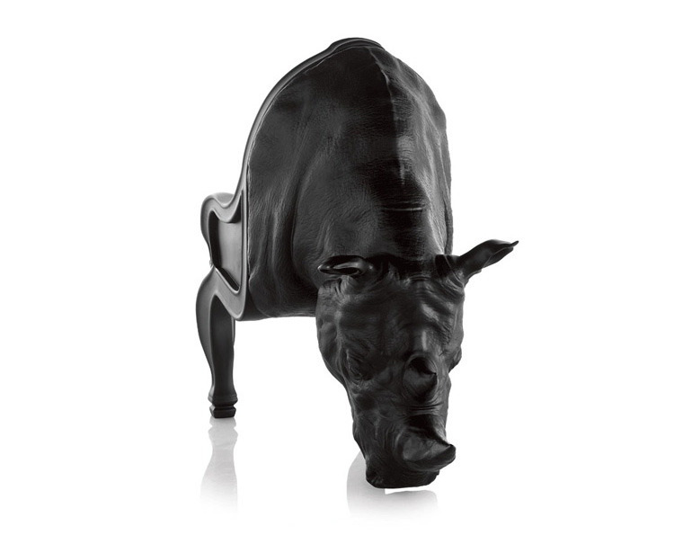 西班牙设计师 Maximo Riera 设计了一组包括章鱼、犀牛、海象、狮子等在内的 15 件动物造型座椅系列皮椅。这个系列的动物椅集合了不同的物种,从哺乳动物到爬行动物,甚至包括昆虫。每个设计都保留了动物的自然活力,同时又准确还原动物的外观特征。这些动物椅的初衷是一种尝试,希望以动物的栖息来反映和捕捉大自然的美,并向我们星球上的整个动物王国致敬。设计师除了表现动物的野性美,也在善意的提醒人们要维持生态的平衡,尤其对濒危物种多加关注,以实现人与自然的相互依赖和谐共存。Rhino Chair(犀牛椅)是他之前一个系列家具作品的延续。这一系列作品将家具和动物结合到一起,每件家具的主要部件都装饰有一种动物。这次的作品和之前设计的“章鱼椅”有着许多相似之处。“犀牛椅”内部有一个框架用以支撑整个椅子的重量并加强稳定性和平衡性。 在这次的创作中,Maximo Riera 选用犀牛这种动物来表现自然的能量和威力。当设计尚停留在概念阶段时,Maximo Riera 意识到创作中的最大障碍是合适的比例。制作完成的犀牛椅具有极强的雕塑感,并拥有“王座”一般十分优越的比例,凸显了动物本身尊贵霸气的品质。