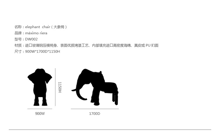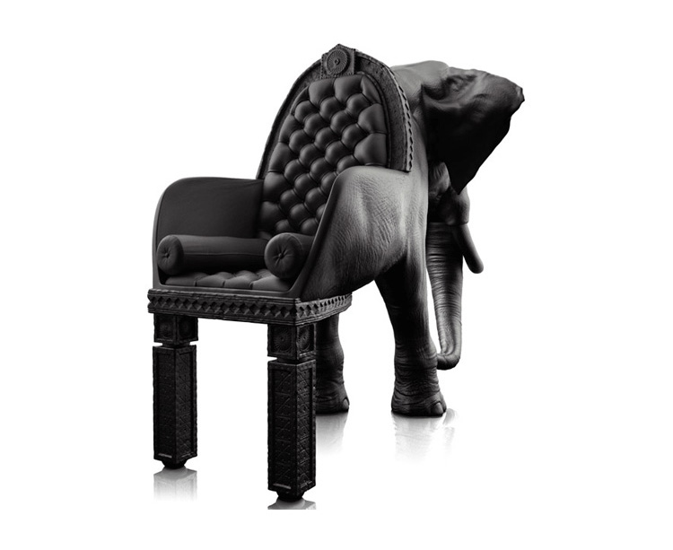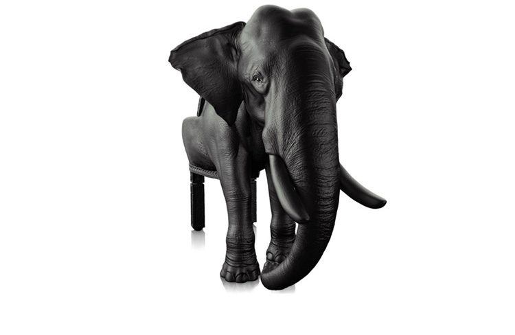 西班牙设计师 Maximo Riera 设计了一组包括章鱼、犀牛、海象、狮子等在内的 15 件动物造型座椅系列皮椅。这个系列的动物椅集合了不同的物种,从哺乳动物到爬行动物,甚至包括昆虫。每个设计都保留了动物的自然活力,同时又准确还原动物的外观特征。这些动物椅的初衷是一种尝试,希望以动物的栖息来反映和捕捉大自然的美,并向我们星球上的整个动物王国致敬。设计师除了表现动物的野性美,也在善意的提醒人们要维持生态的平衡,尤其对濒危物种多加关注,以实现人与自然的相互依赖和谐共存。Elephant Chair(大象椅)是他之前一个系列家具作品的延续。这一系列作品将家具和动物结合到一起,每件家具的主要部件都装饰有一种动物。大象椅(Elephant Chair),拥有钢制的骨架、泡沫塑料的血肉和黑色的皮肤(皮革),全重高达160公斤,不论是块头还是重量,还是那颗象头雕刻的精细程度,都能让人叹为观止。