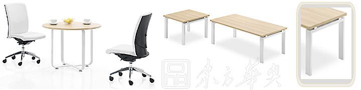 ※ 上图为“方通脚”款式会议桌,脚架的颜色有银灰色和白色选择,台面板有多重选择,满足领导临时接洽和会议的需要!