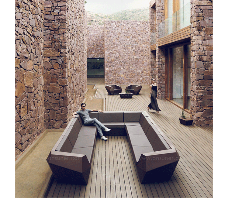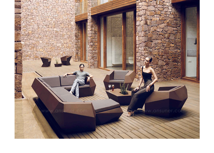 FAZ是西班牙著名建筑师Ramon Esteve为VONDOM公司设计的组合家具和花盆系列。Ramon Esteve是和谐的,平静的和永恒的建筑师,创造了一个矿物质的,表现力丰富的形状,;令FAZ跟我们的家或其他环境完美融合。气氛,包围的结果是材料和光线元素幸福的组合,其独特的察觉是气混合体。他们的灵魂,VONDOM,他的独家性是他原材料的品质,允许,甚至在最苛求的环境使用。FAZ的组合性允许消费者灵活的组合他们的家具和花盆,来适应他们的风格,但并没有失去这家具系列的和谐。FAZ,由辅助桌子,扶手椅子,组合沙发和咖啡桌子,还有三个不同比例的花盆组成。这个系列还配套了最优质的户外坐垫。FAZ,他的结果是表现本质,包含复杂性和密度性,直到极端细节的杰作,其目的是创造一个我们向往的居住地。
