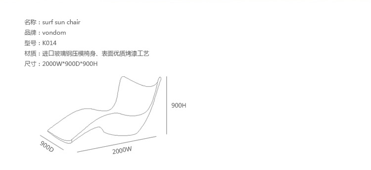 "波浪太阳椅由凯瑞德拉希德设计。它流动波浪型座位和支托,给人一种平静的感觉。运用这种柔软膨胀,流体姿态变化来改变活动的光线。设计者想要达到一种画布般的幸福感,并能唤起平静,漫不经心感觉,使人充满活力,令人耳目一新,宛若一个新的觉醒,升降全面推动力。"