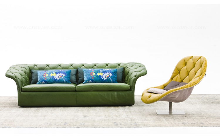 帕特丽夏·厄奎奥拉采用的是一种全新的旋转方式,革命性地改变了这一概念,她设计了一系列的产品,这些产品的形状看起来是液态的,就好像它们在框架上融化一样,以制造柔软的,舒适的,几乎随意的线条,这些布料和皮革都用按钉固定在外壳上。这些碎片似乎披着披在肩上的披巾,座椅上有各种重叠的软垫:几乎是对其覆盖层的设计、层叠的皮革和其他材料、颜色和面料类型的关注。这是一种奢侈的拼贴,当它穿过时,就会给人一种游牧式的全球精神。
