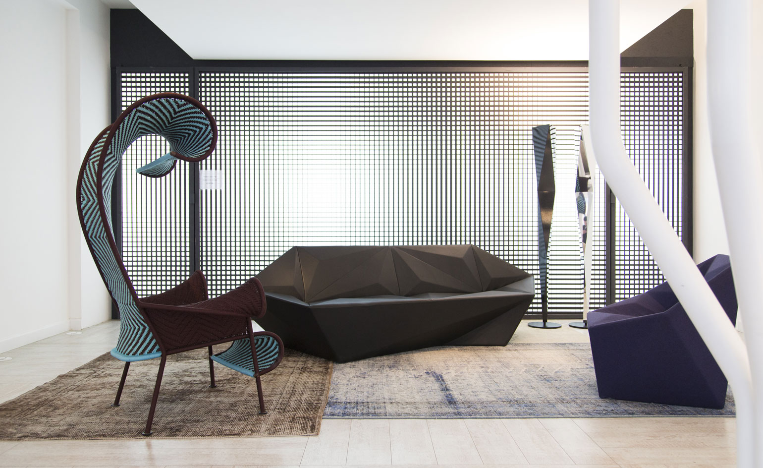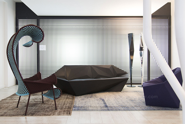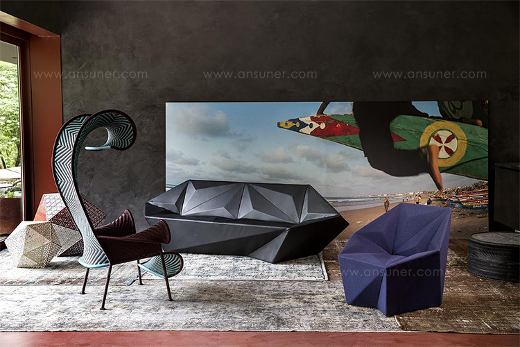 Gemma系列是围绕着对比和经验的概念发展而来的。立体几何的强烈不对称与室内装饰的柔软性形成了鲜明的对比。这个多面的侧面让人想起了珍贵的宝石和15世纪意大利挂毯的典型组合。这个集合代表了Libeskind的复杂几何图形和Moroso的著名专家之间的协同作用。