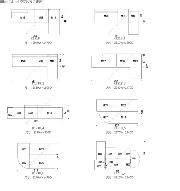 Bikini Island 公共沙发 系列尺寸/示意图