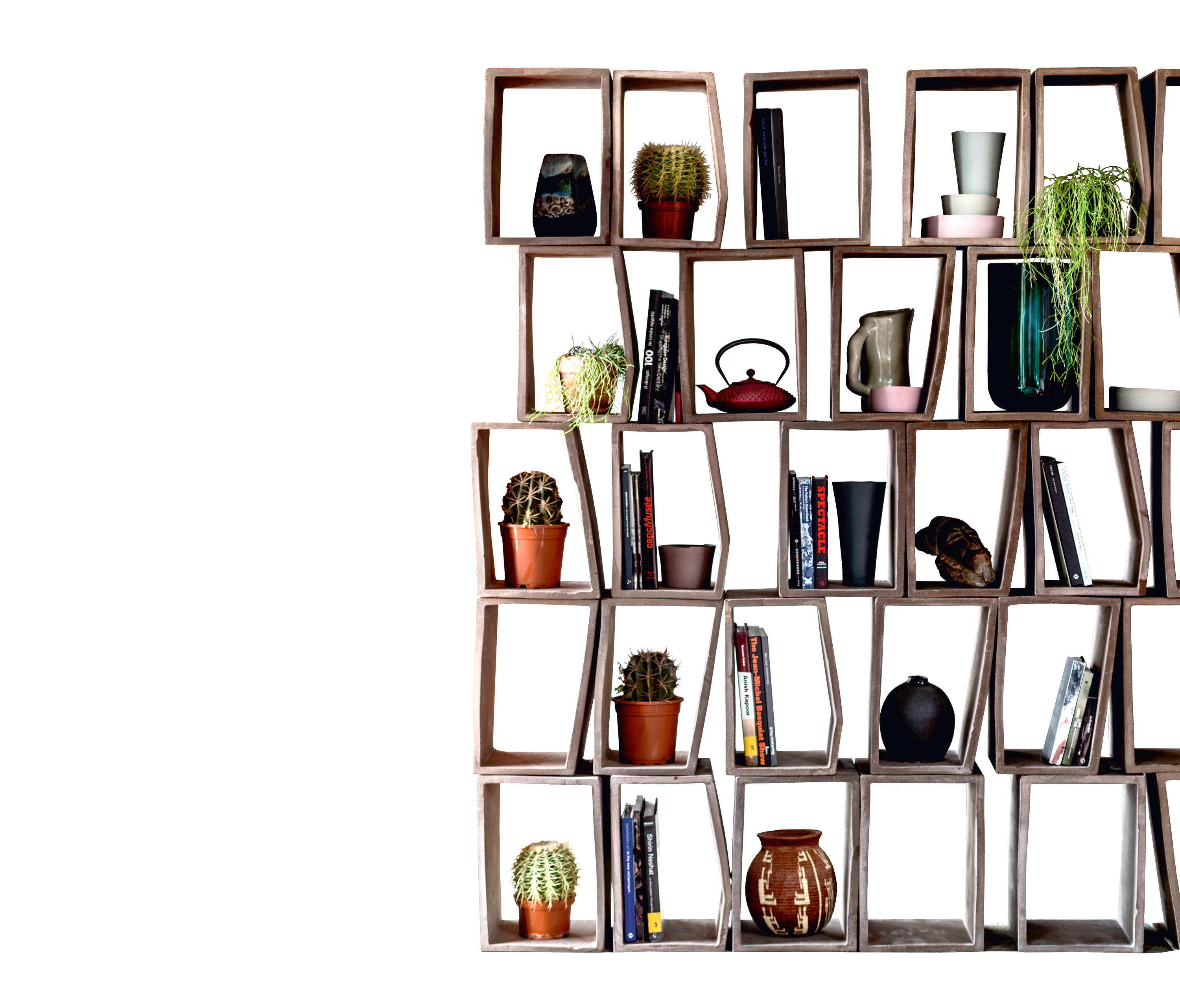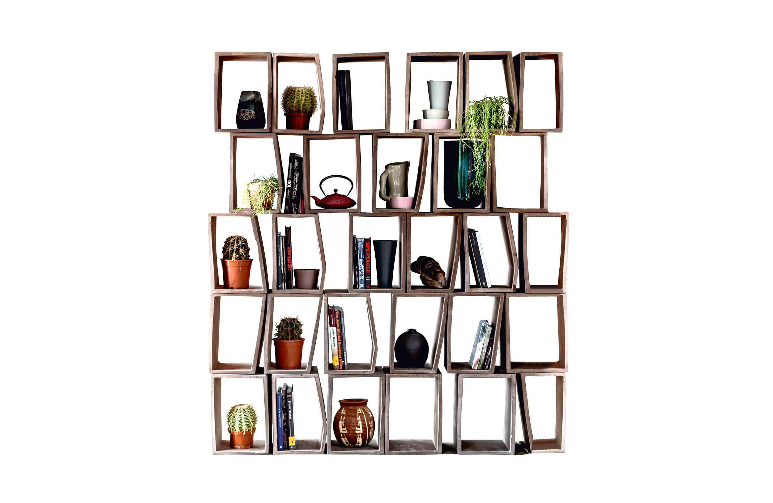 书柜是我们记忆的持有者,通常是用木头、金属或玻璃制成的,但绝不是粘土。Terreria创造的空间既可以是新的也可以是旧的,也可以是城市的,也可以是乡村的。Terreria的部分是模块化的家具,部分是意大利农舍式的窗户,可以俯瞰乡村。单一的元素可以被组装起来,以产生无限的配置,并利用陶瓷的多种潜力:它的颜色、色彩和触感,从陶土的各种粗哑到各种不同色调的清漆的光滑。它是一个开放的系统,集合不同组合的灵活性意味着没有一个设计或外观是完全相同的。