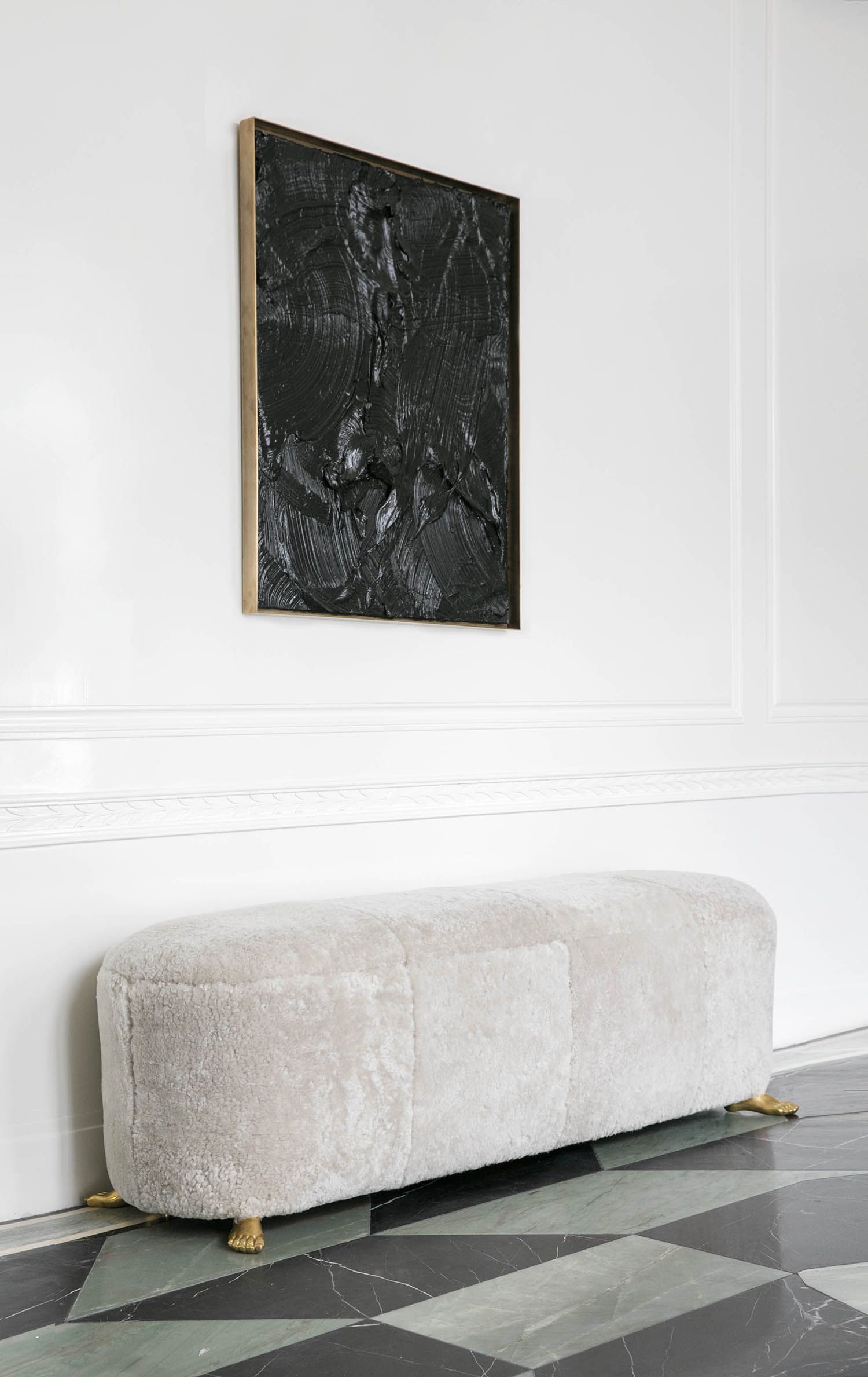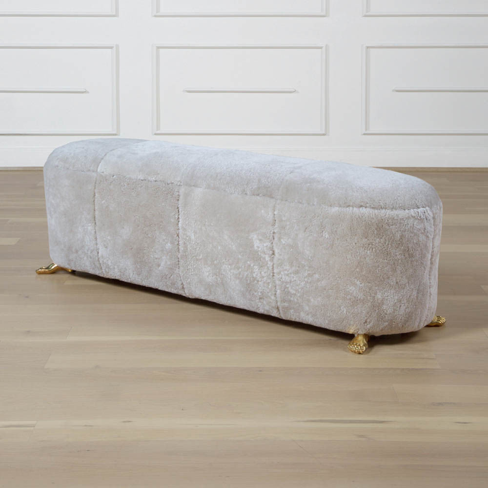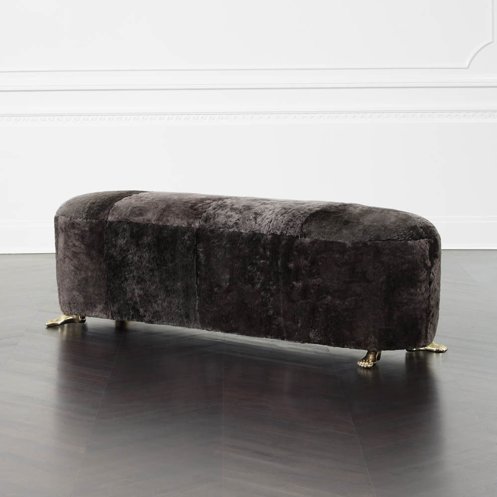 Foot Bench是我们受欢迎的Foot Stool的天然搭档。 这款长凳的柔软曲线采用奢华的自然羊毛皮制成,并安装在坚固的青铜铸造脚上。 意想不到且引人注目,它非常适合作为床尾凳,入口处的长凳,或作为客厅中时尚的奥斯曼。