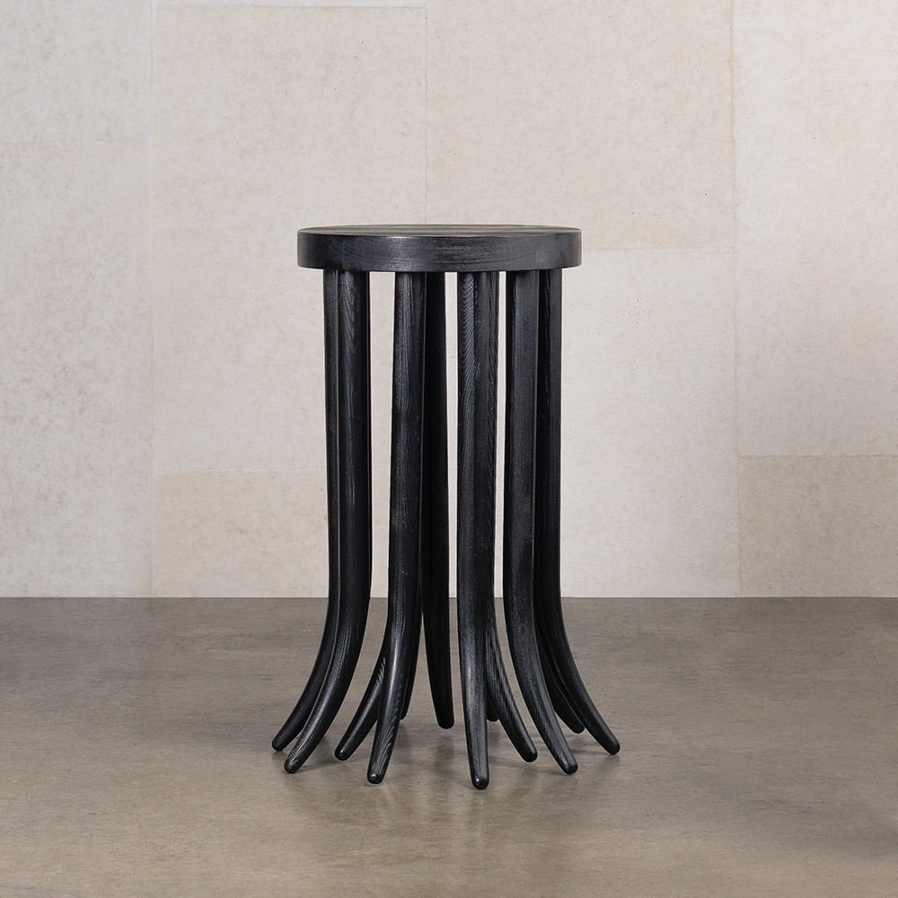 Drexel边几有机和雕塑,突出了艺术与功能之间的俏皮二分法。这个小巧的侧边桌以道格拉斯冷杉为特色,采用碳化处理,喷砂以增强木材的动态纹理图案。