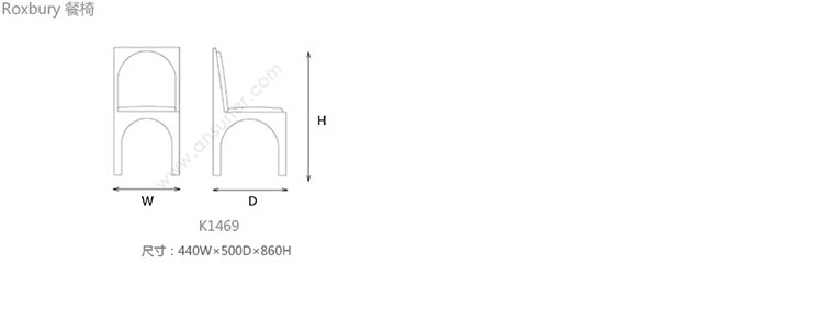 Roxbury 餐椅 系列尺寸/示意图