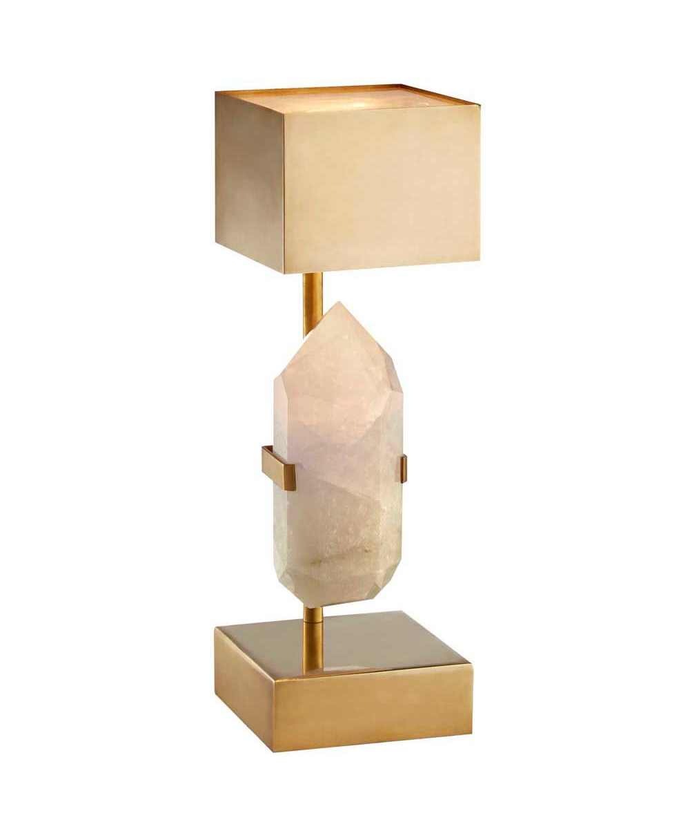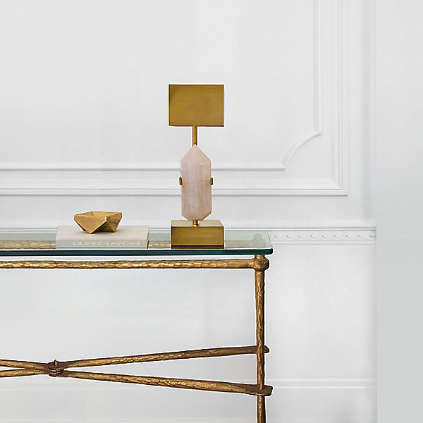 这款台灯由手工精选的坚固天然石英石和雕塑黄铜底座组成,融合了Kelly对巧妙调制和天然材料的商标亲和力。 优雅而前卫,其微妙的精致和深沉的酷感为任何空间增添了精神和维度。