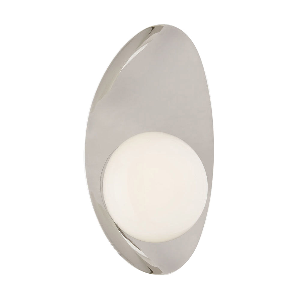 Nouvel小壁灯简约而大胆,突出了混合材料和曲线形式的并置。 这款壁灯有古董黄铜,抛光镍或青铜和黄铜的组合,每个都有白色玻璃球。 适用于潮湿场所。