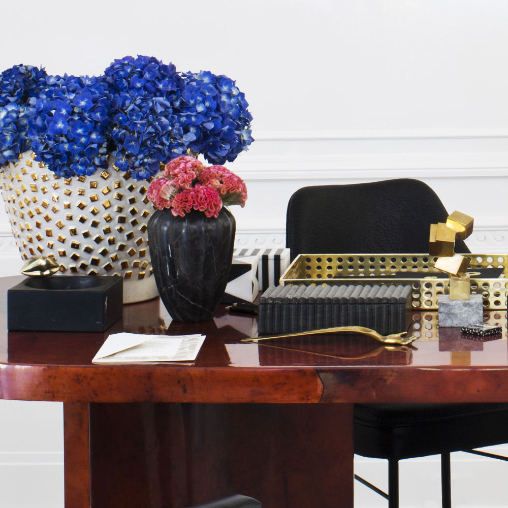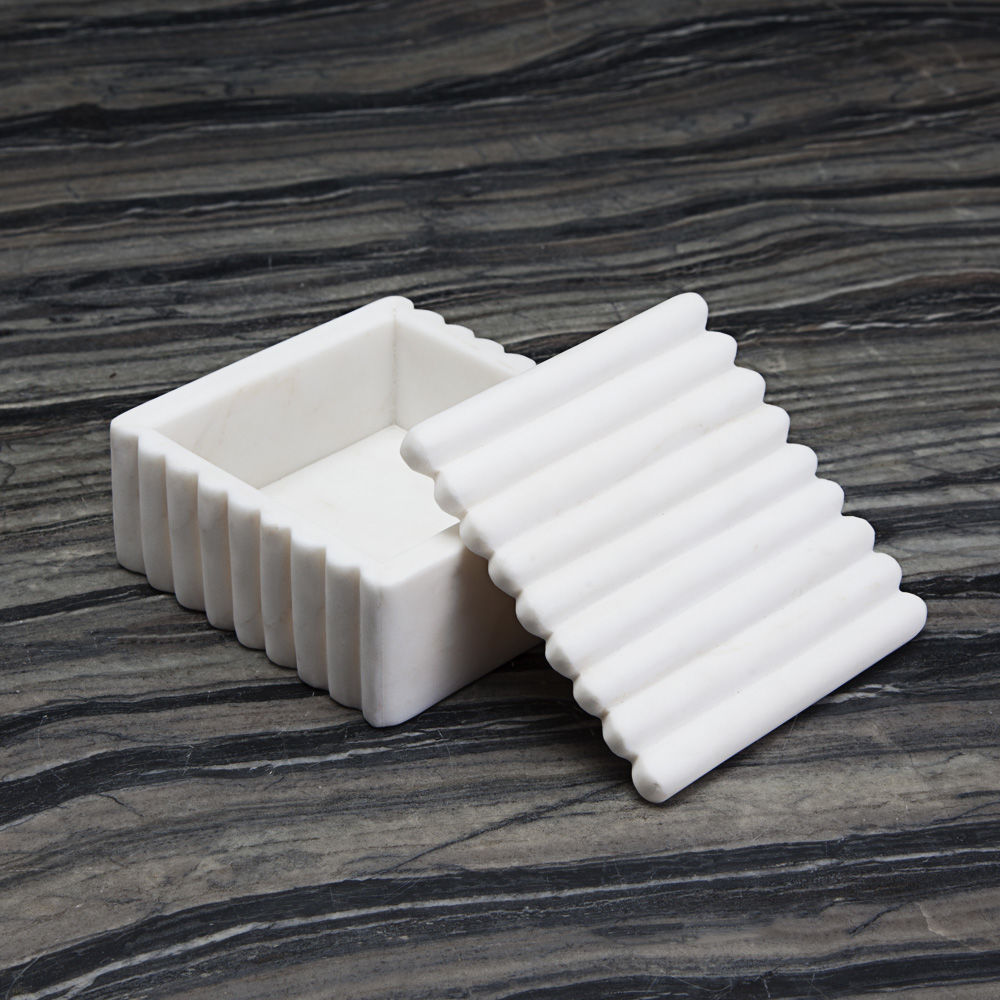 具有一个由手工雕刻的黑色或白色卡拉卡塔大理石制成的带罗纹的盒子。凯利对材料的选择使这件作品与众不同,它具有强烈的男性线条。一个完美的别致和简约的桌面或书桌配件。