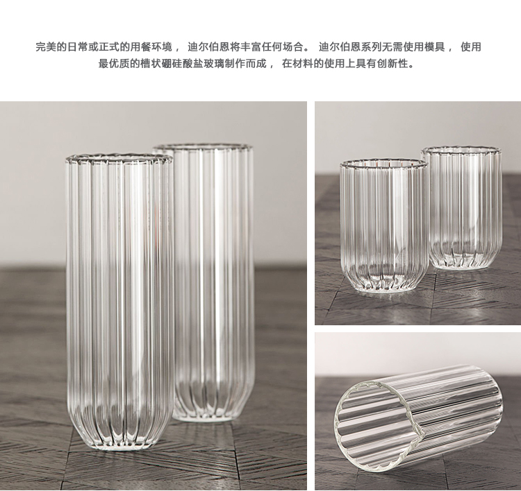 完美的日常或正式的用餐环境,Dearborn(迪尔伯恩)将丰富任何场合。Dearborn Collection(迪尔伯恩系列)无需使用模具,使用最优质的槽状硼硅酸盐玻璃制作而成,在材料的使用上具有创新性。