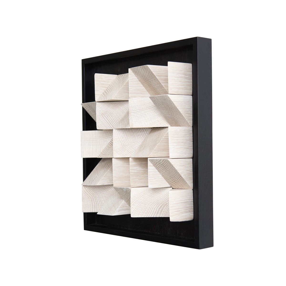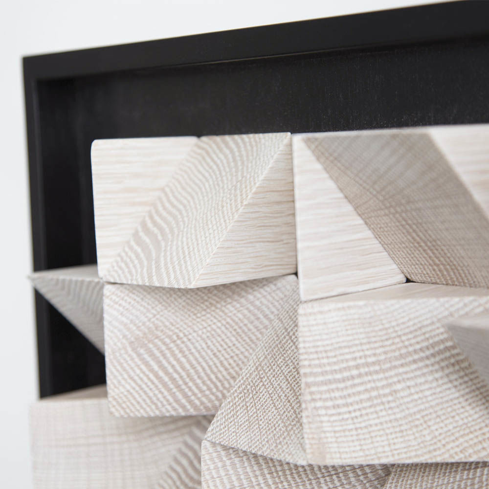 这款现代而独特的作品由角形四分之一锯,实心白橡木块组成,采用黑檀木或天然饰面,为任何空间增添几何形状和丰富质感。 你可以看到它从多个角度或照明条件下产生的变化; 当光在纹理表面上移动时,阴影会变得十分有趣。