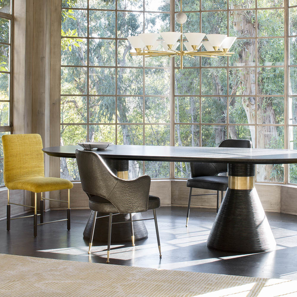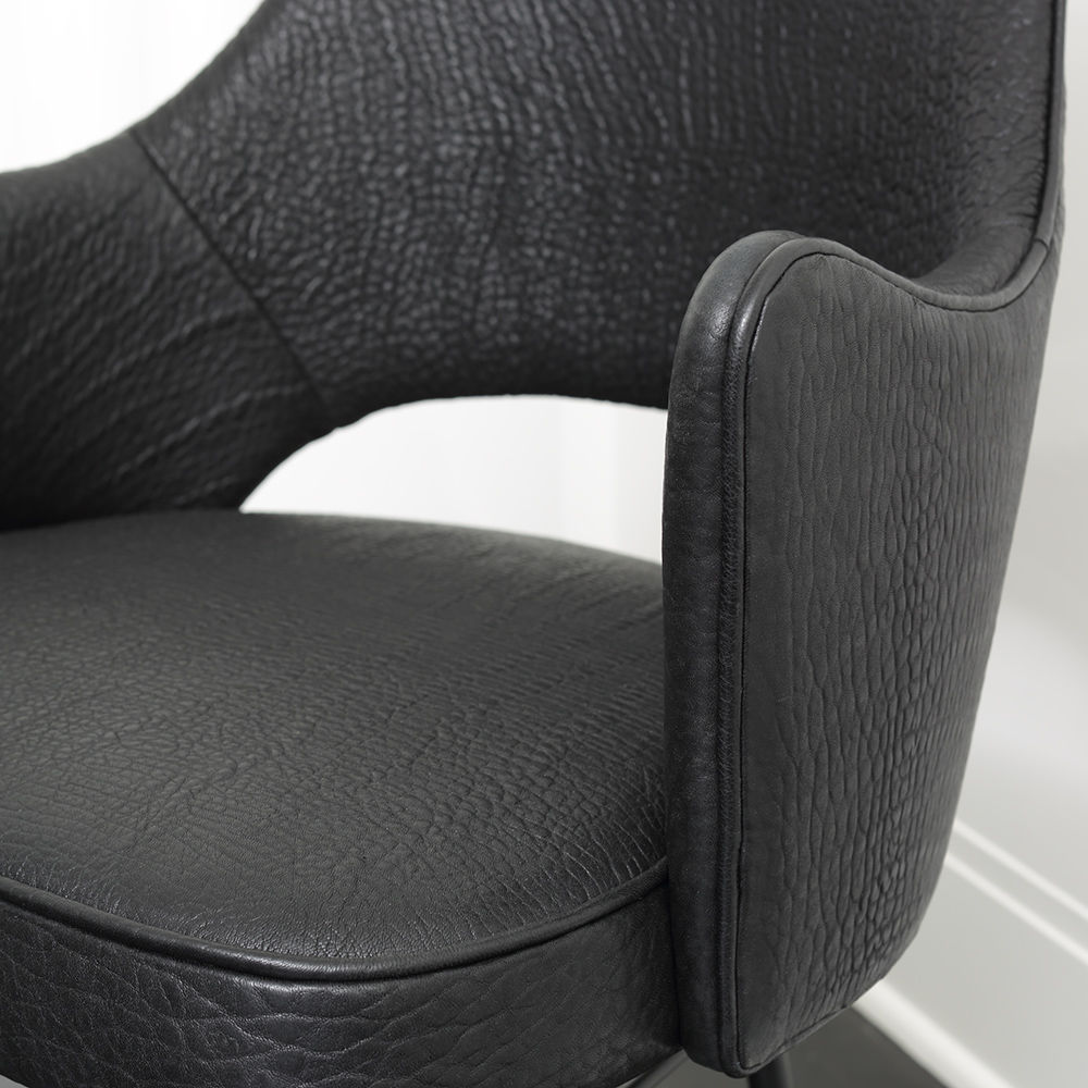 这款高架扶手椅融合了中世纪的欧洲风情和现代感,在深色木质家居图书馆和正式餐厅中一样舒适。 Rigby椅子采用柔软弯曲的手臂和略微倾斜的背部,带来舒适感。 黑色的钢底座上有实心的青铜木屐,可以用手转动,还可以滑动。