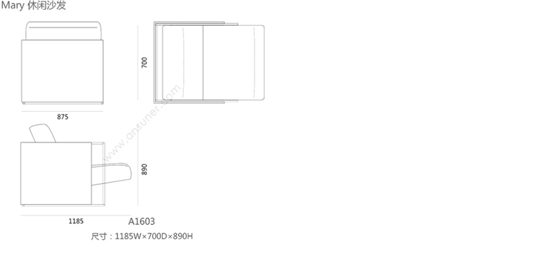 Mary 沙发 系列尺寸/示意图