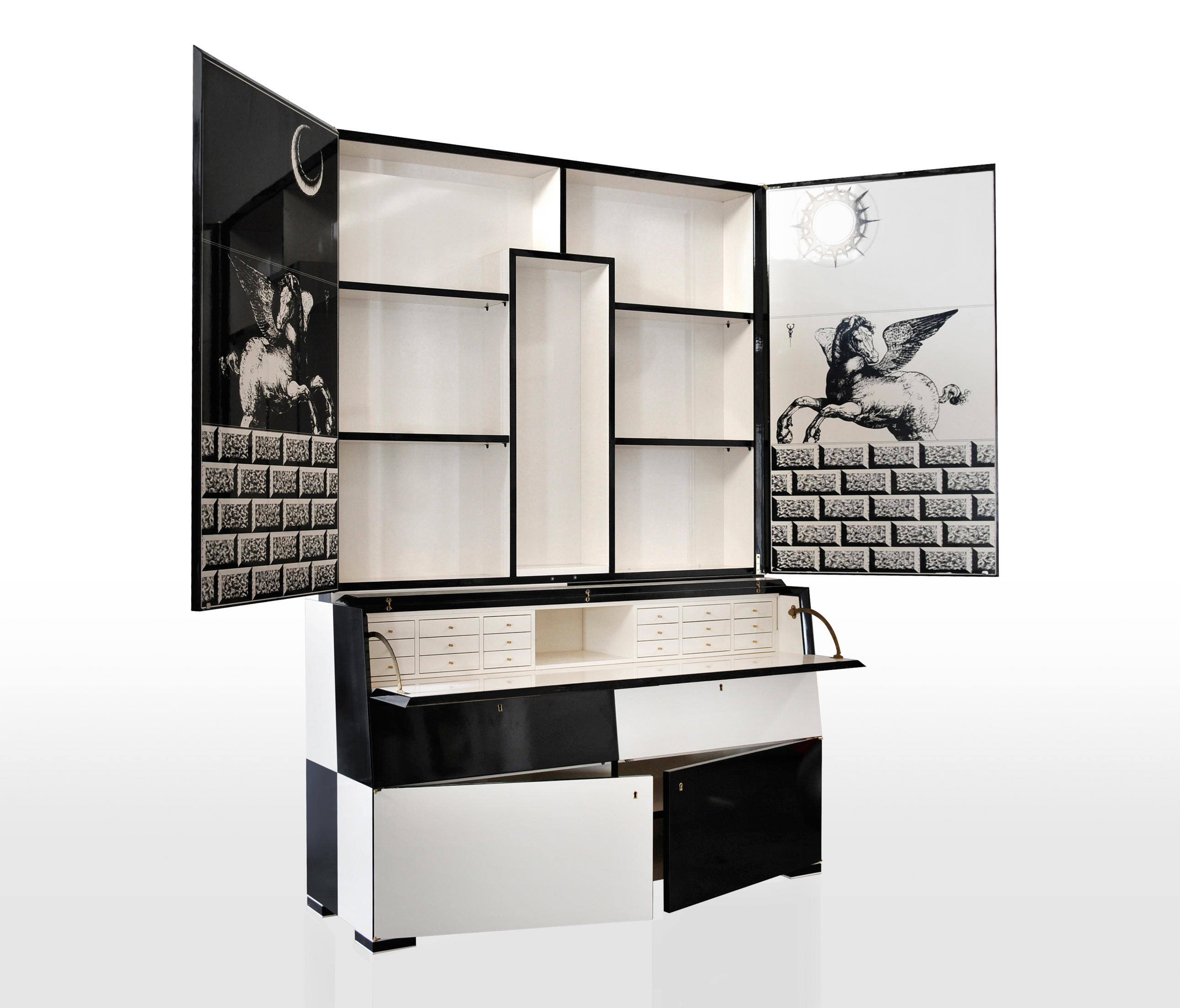 黑色和象牙开关交替作为Damas书架的一个显着特征。