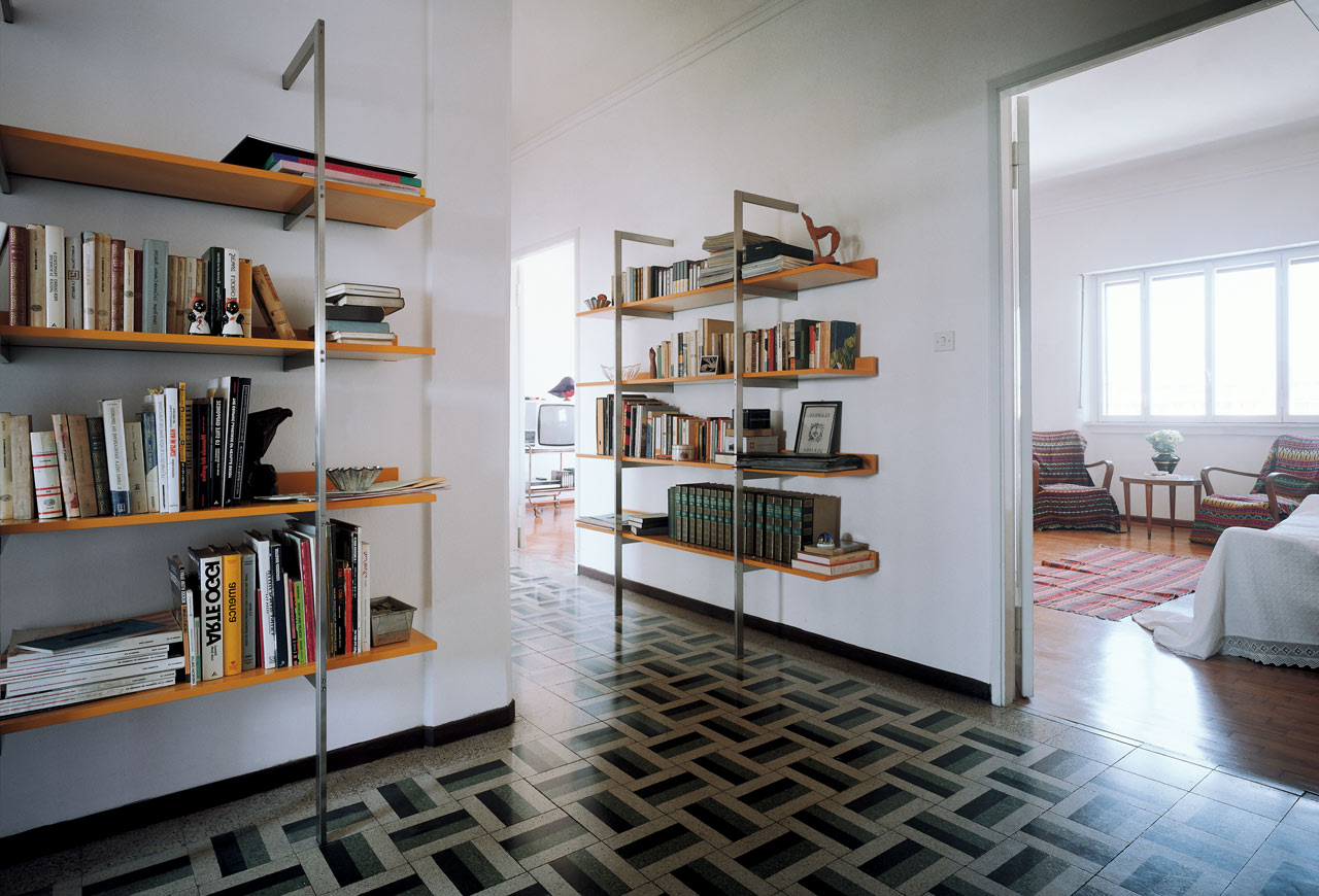 带金属框架和木制书架的系列壁式书柜。框架由抛光镀铬金属制成的两个簧片组成。架子可以是哑光或抛光漆器的所有颜色的集合:自然或温格染色橡木。书架也可以有不同颜色的书架。书架通过内六角螺钉固定在结构上,书架通过一个膨胀钩固定在墙上。