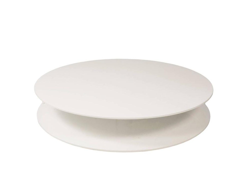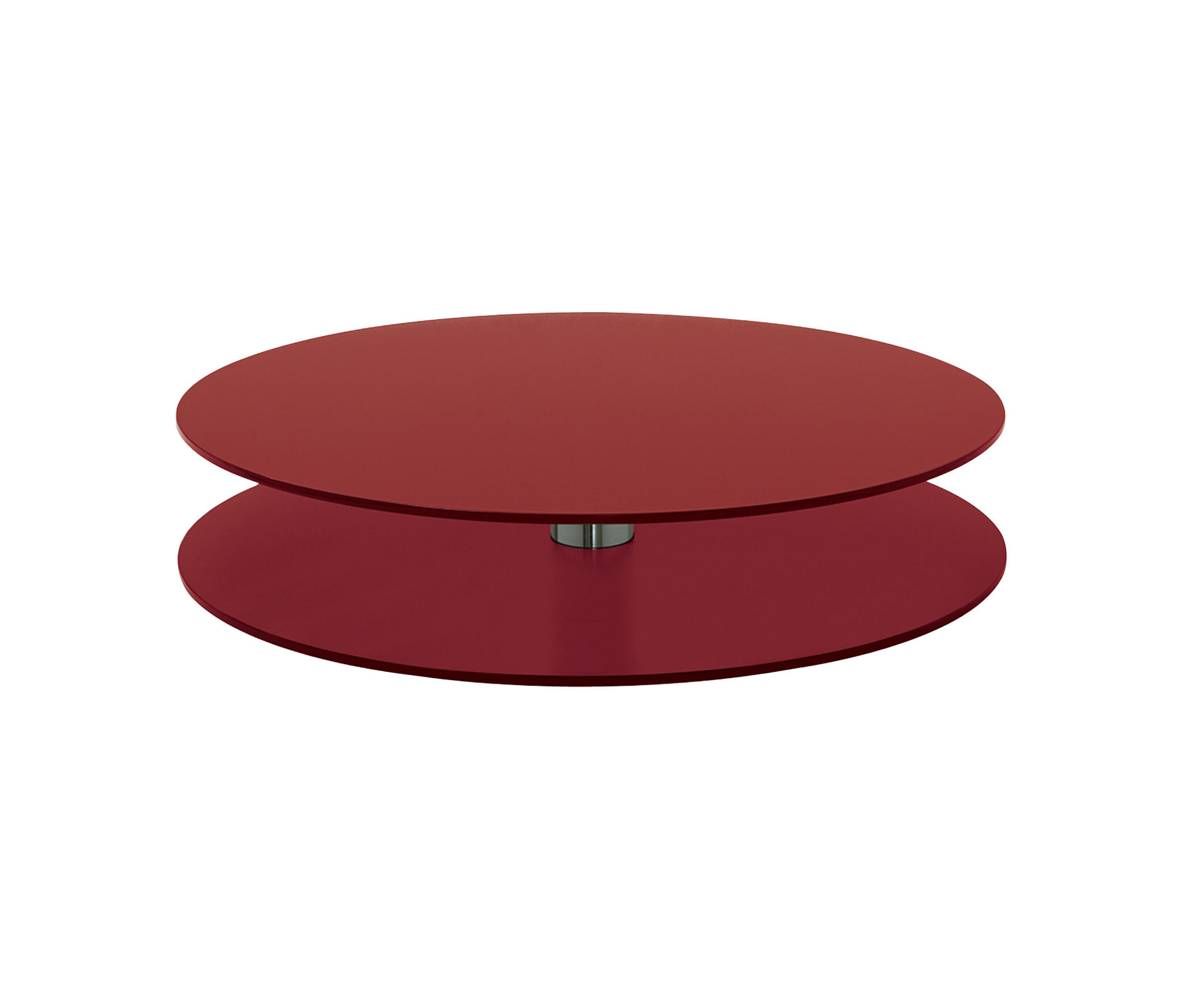 圆形咖啡桌由两个木制台面亚光或抛光漆组成,可提供所有颜色的系列,通过抛光镀铬钢柄连接。