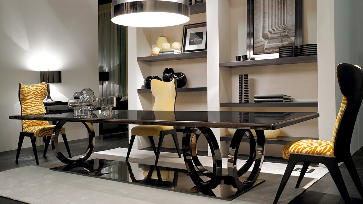 TOP Lacquered wood or veneered with Ebony Macassar, Rosewood or Rosewood Dark* with glossy brushed finishing (veneering inlays 4/4)