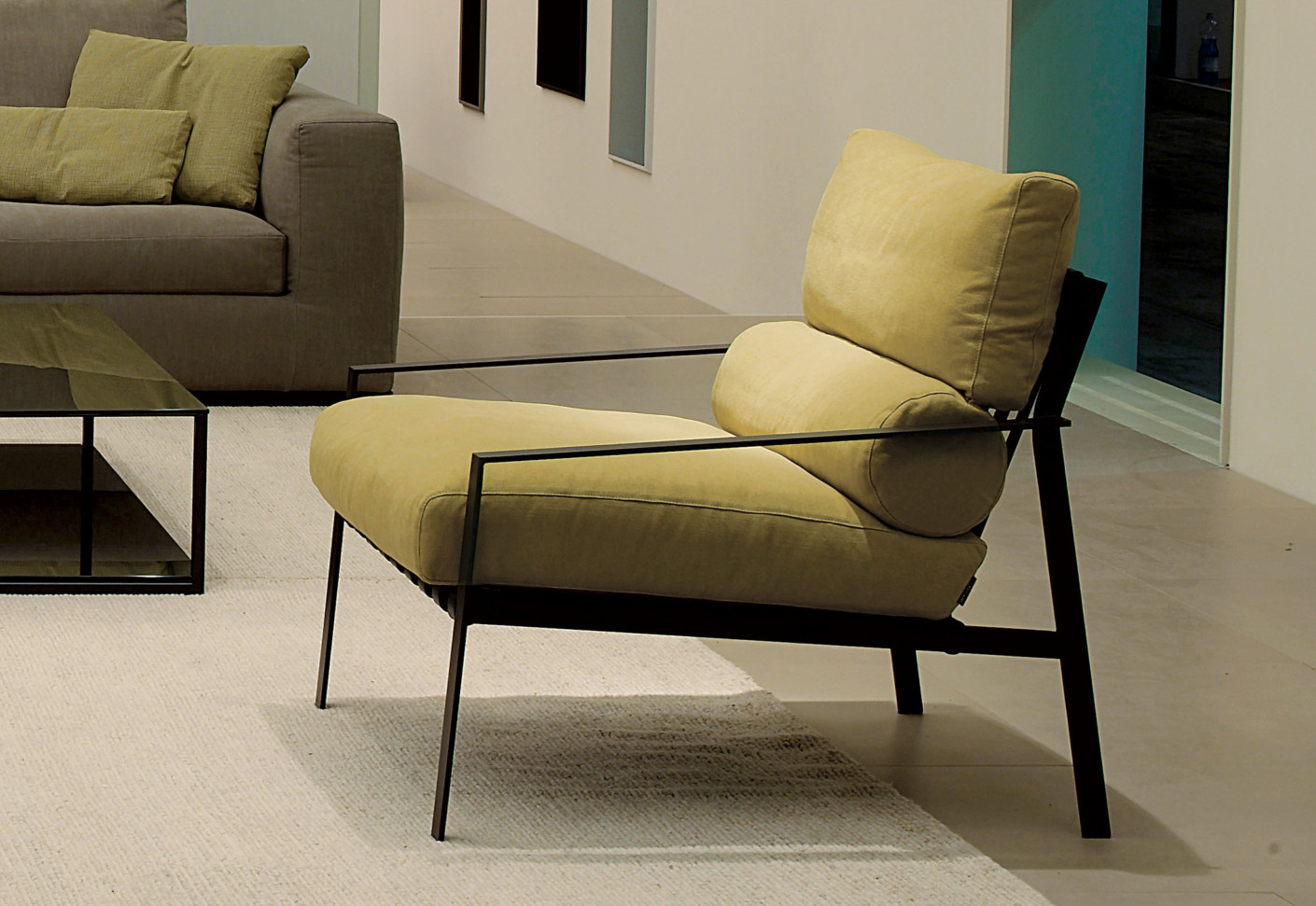 这是一种休闲椅,它的特点是用皮带支撑柔软舒适的垫子。其直线结构是高雅的现代生活方式的一种表达。这一结构有两种形式,一种是云母褐色的涂漆或黑色镀铬金属。