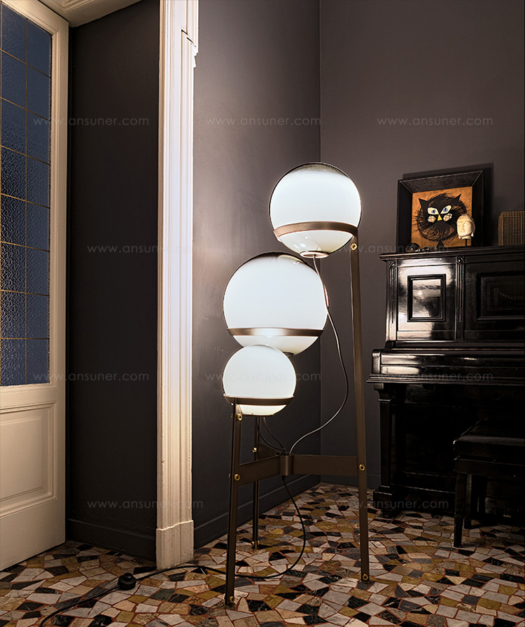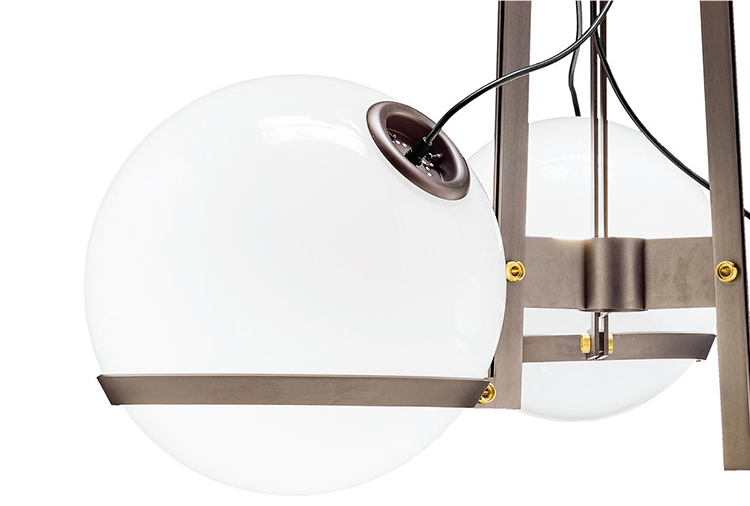 创意和吸引力是泡泡龙的特征。 泡泡龙可用作落地灯或悬吊灯,反映了泡泡龙的轻盈。其三个不同深浅和尺寸的玻璃球体由薄金属条带支撑。设计灵感来自同名游戏泡泡龙。