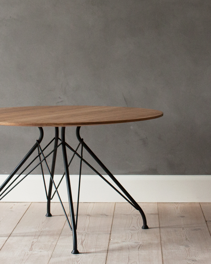 金属丝茶几由Jasper Overgaard和Christian Dyrman设计。2014年设计的金属丝躺椅是一种更低、更宽、更平放的版本,与铁丝餐椅相比。
